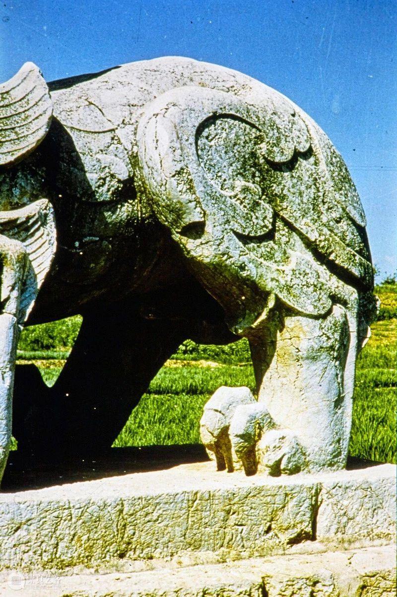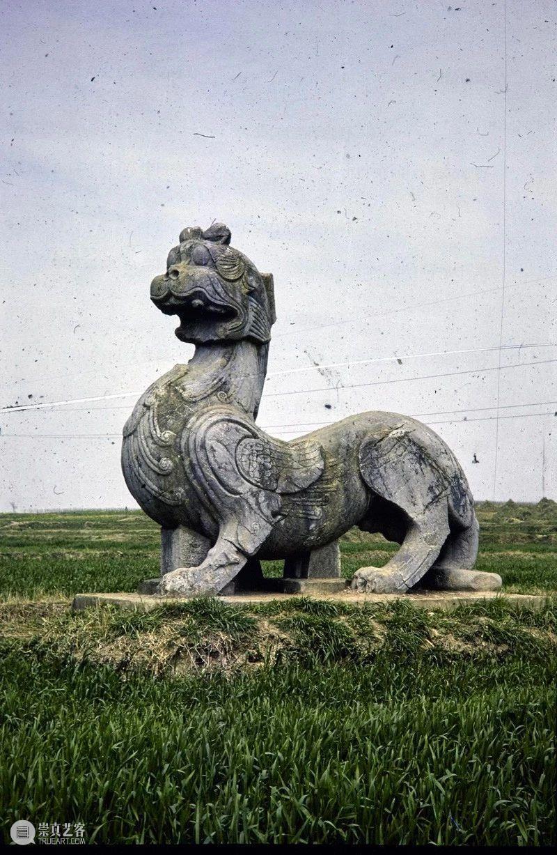 Photographic slide depicting a qilin, Southern Liang (502- 557 AD), Southern Dynasties (420 - 589 AD), Tomb of Xiao Yan, Liang Wudi, Danyang, Jiangsu Province, China, 1986, from the Ann Paludan Photographic Archive of Chinese Sculpture. (官网标注为萧衍,有误)