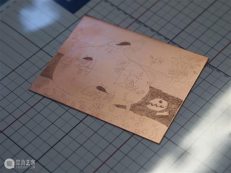 铜版将经过磨板、脱脂和上沥青等前期处理后,才可直接创作。入选的小朋友们将收到已经处理完成的材料包。