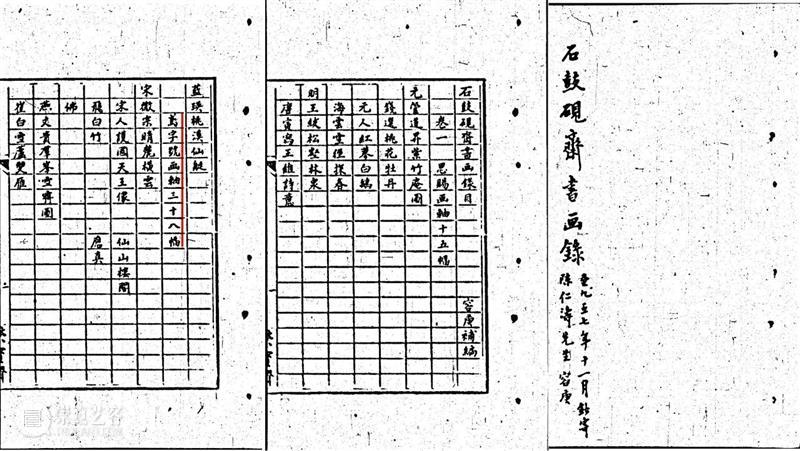 《石鼓砚斋书画录》共四卷,现仅找到卷一,即容庚先生先生的抄本,为藏于香港的微缩胶片。从胶片来看,抄本所用纸张为荣宝斋方格纸。扉页有容庚先生所书“一九五七年十一月,钞寄陈仁涛先生,容庚。”可知系抄给金匮室主人陈仁涛的。而《爱吾庐书画记》、《澹复虚斋画缘录》皆为金匮室用纸,再加上同为藏于香港的胶片,所以推测这批稀见书画录,全是容庚先生抄录,并送给陈仁涛的。