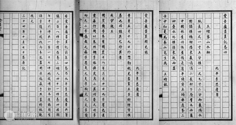 《历代著录画目续编》也仅录了卷三、卷四、闻见录、自跋。此处的记载多有勾抹,但最后有淡墨小字“缺第二卷”。并且从现在搜集到的卷数来说,事实也确实如此,且卷一也是容庚先生抄本,所用笺纸同为“金匮室”陈仁涛专用,格式与卷三、四无异。卷一可能在抄录完后,一时不知所踪。但统计所见卷一、三、四中的书画数量,与容庚先生所述皆不相符。卷一录35件,卷三录42件,卷四录68件。其中原因有待细审。王非非《寓意于物与真好自居——李佐贤书画鉴赏研究》一文已经对《爱吾庐书画记》有非常深入的研究,可参看。