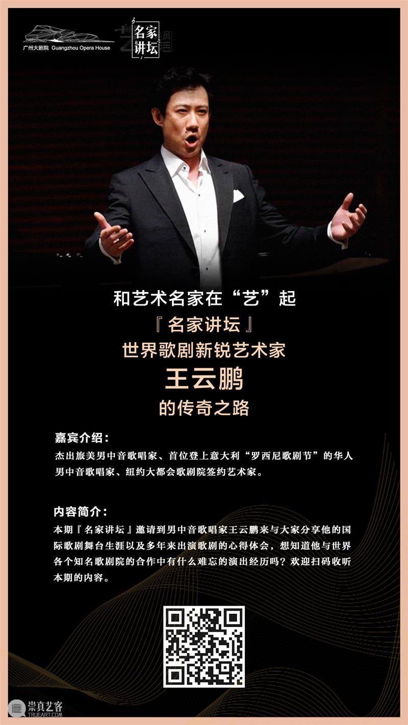 本期栏目我们邀请了旅美男中音歌唱家王云鹏与大家分享他的国际歌剧舞台生涯,想知道他与世界各知名歌剧院合作中有哪些难忘的演出经历吗?以及王云鹏多年来出演歌剧的心得体会有哪些等等,切勿错过本期的精彩内容!欢迎扫码收听本期的内容,关注艺术名家的艺术人生,尽在广州大剧院会员俱乐部喜马拉雅FM频道。