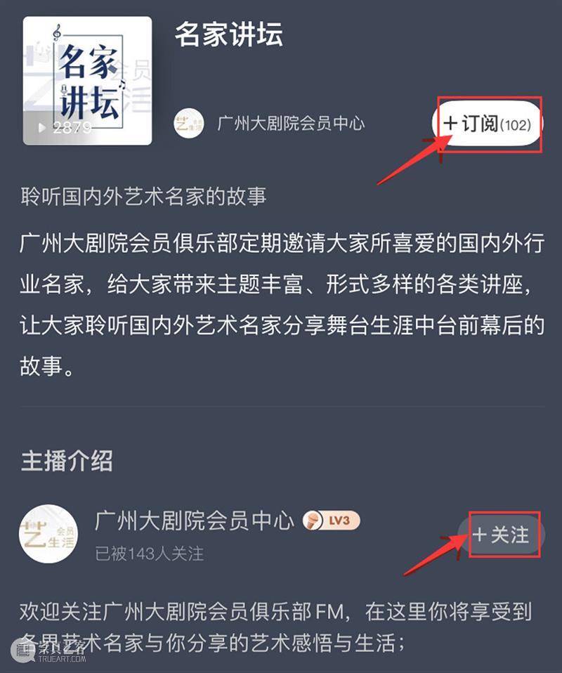 订阅&关注广州大剧院的喜马拉雅FM频道,每认真听完一期【名家讲座】内容,并在喜马拉雅FM中的当期内容底下留言打卡最多的粉丝,在疫情结束之后,将会在喜马拉雅FM中收到我们的私信,送出让你意外惊喜的礼物,让你充分感受我们的艺心艺意!(下周一开始更新,每逢一三五给粉丝推送一期内容)
