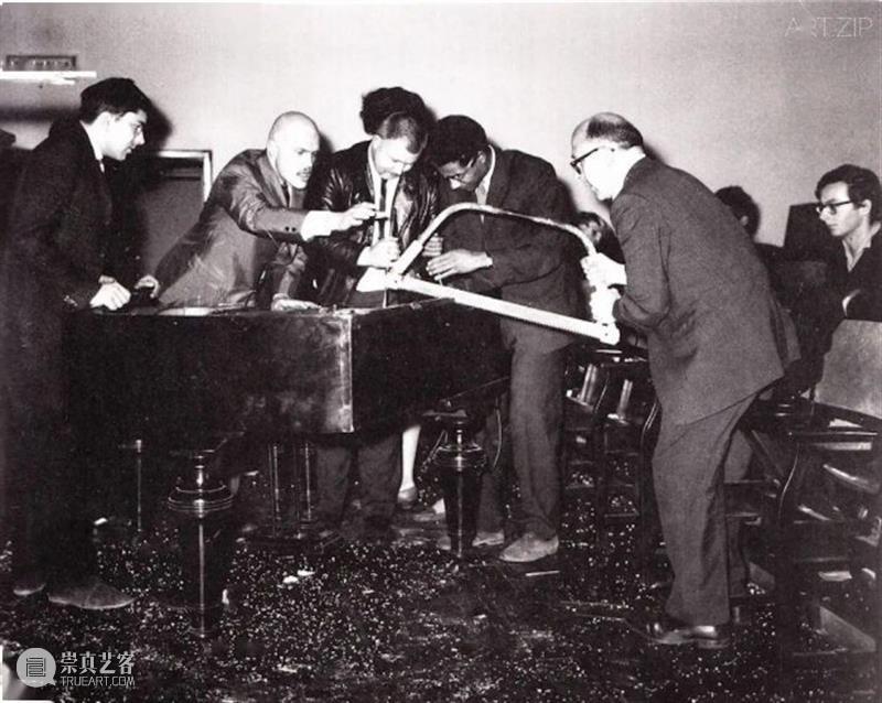 1962年在德国威斯巴登博物馆(Wiesbaden Museum)举行了为期四周的“激浪·国际最新音乐节(The Fluxus International Festival of Very New Music)”。这是激浪派的开端,尽管筹备仓促引起了部分艺术家与媒体的不满,但菲利普·科纳(Philip Corner)作品“钢琴行动(Piano Activities,1962)”确是城中最大的丑闻。当时表演者科纳并未到场,事件起因是运输经费的短缺,以麦素纳斯为首的四位著名艺术家利用在场工具对那架三角钢琴大肆发泄,各种即兴的节奏合成乐曲,直到整架钢琴被摧毁殆尽。这次“偶发事件”在德国人眼里是亵渎了肖邦挚爱的乐器,同时也引起了在场观众的阵阵骚动。