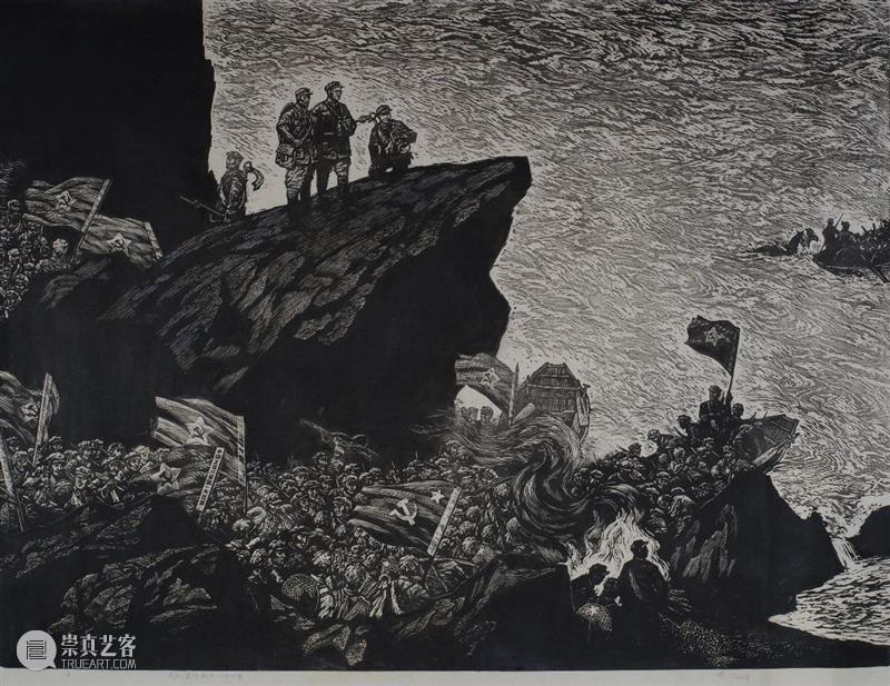 纵观史一的彩色浮水印木刻作品,尽是描绘云南少数民族风情,虽时间跨度达25年之久,但在风格上与《云海深处哈尼寨》无异。如果说这类作品诠释了虚静的一面,其黑白木刻无疑是雄浑博大的体现。 接续《车间理论组》这类风格,史一创作了《金沙舵工》,并在1991年凭借《金沙铁流·1935》获得“建党七十周年全国美术作品展览”铜奖,也开启了接下来十年间频频获奖的先风。