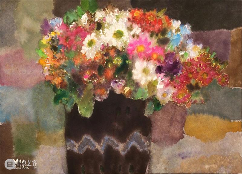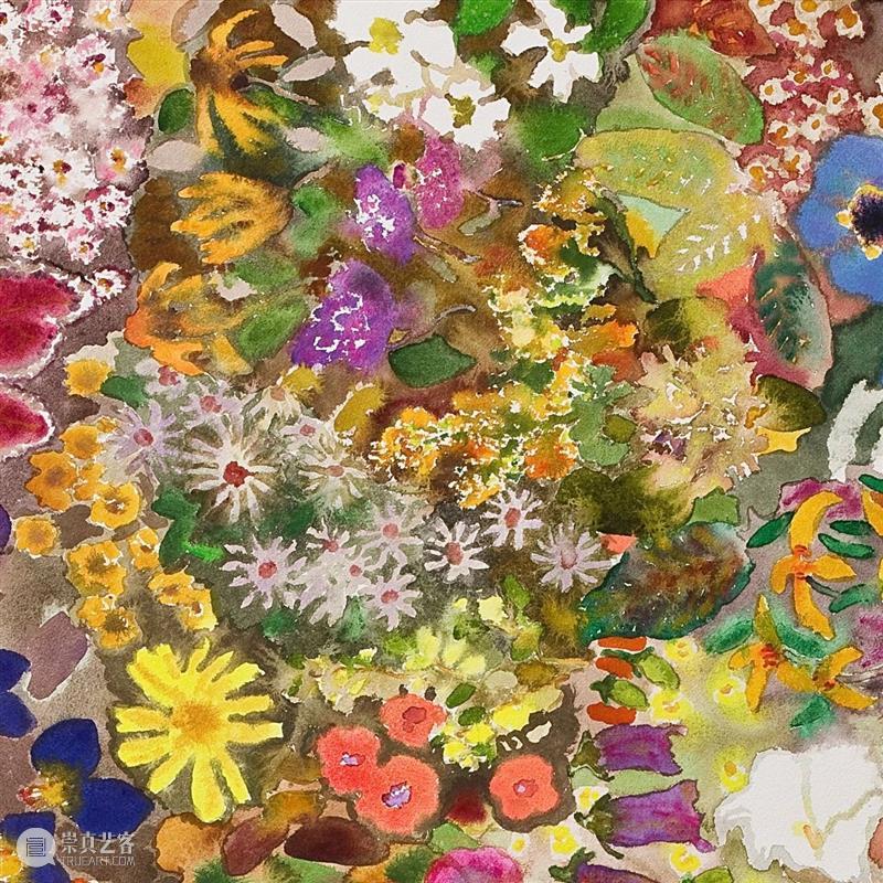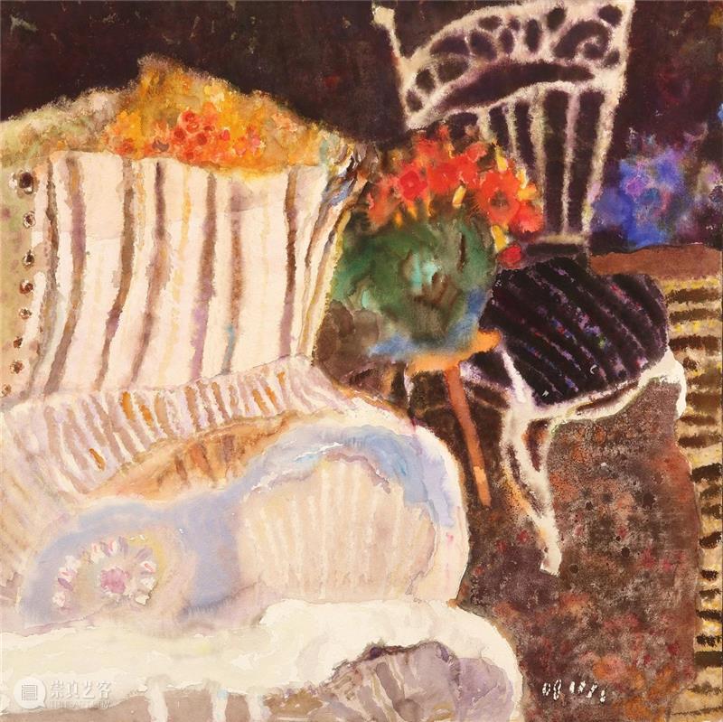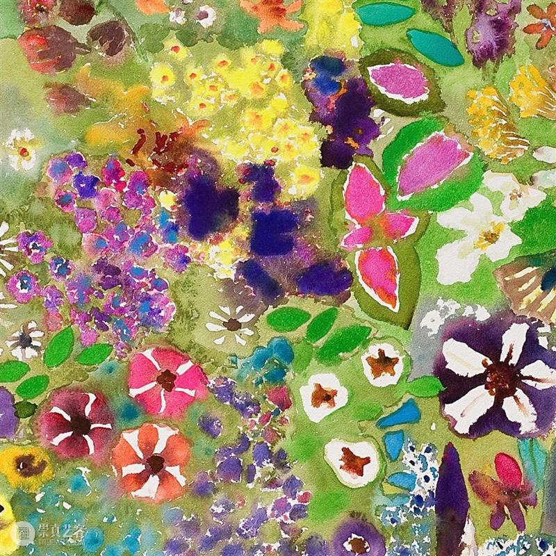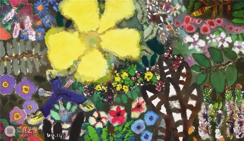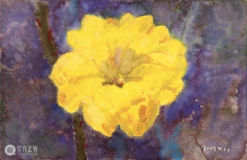 对于自然物象的描绘是郑于范先生十分热衷的,他用那透明的水彩颜色与水进行融合,然后配之以抒情性的笔触,使得画面中的形象或孤独,或喧嚣,或充满回忆,或焕发勃勃生机。作品中这类花花草草是郑于范先生常见的表现题材,朵朵花儿色彩鲜艳、纯洁美丽,草色绿意盎然,这种对大自然物象的传达是郑于范先生心中火热生命力的追求,也是他近些年来艺术思想的集中体现。