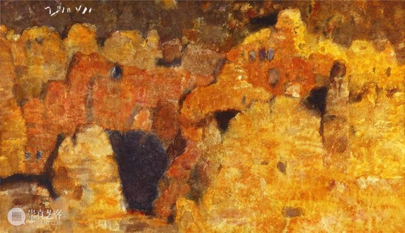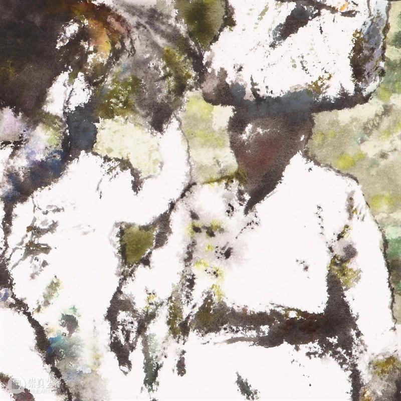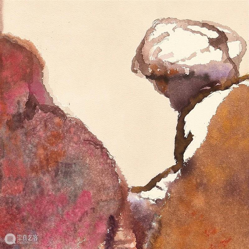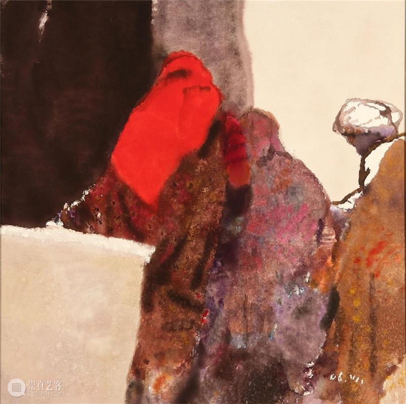 郑于范是同时拥有具象和抽象的创作灵感的“半抽象”画家。他充分发挥了自己所喜爱的水彩画的优点,巧妙熟练地展现出了大师的风范,完成了作品。我们可以从他的作品中察觉出构成一幅画的各种因素,也能感受到这些因素在一种“水性”的喷发中细腻地相互交织着。因为他的作品里的事物的形态和颜色相互重叠交错,所以我们只能非常模糊地捕捉到画中的各种事物。画家的毛笔尖掠过大地和天空,在天地之间形成富有诗意的空间。他擅长用自己的方式,将风景重组,再加之细腻的添笔,创造出全新的氛围。