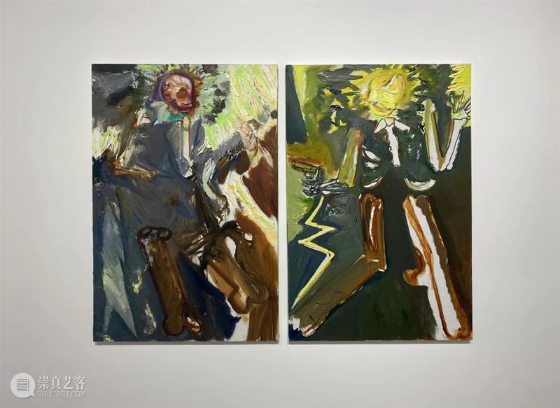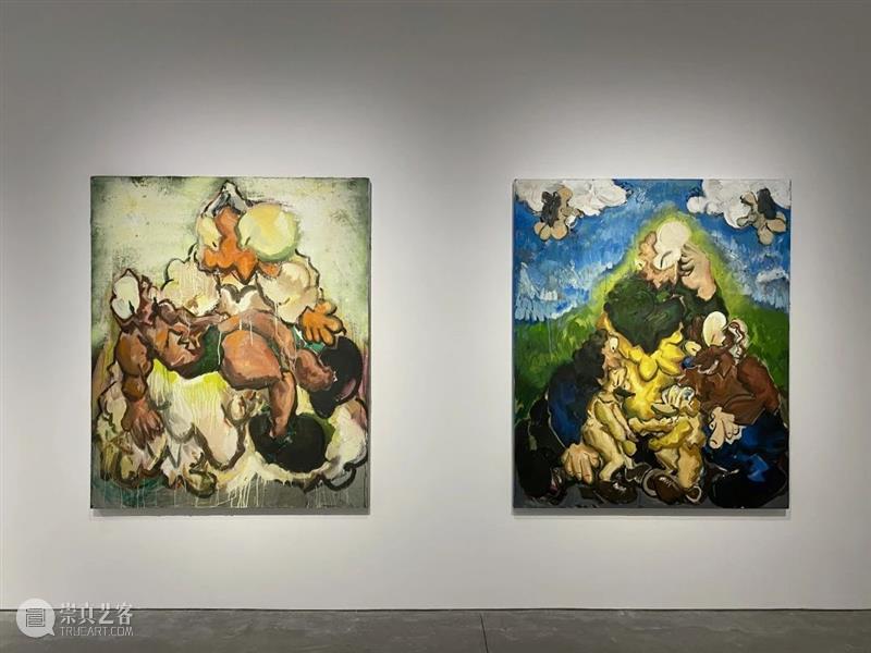 ▲ 左:朱湘闽 ZHU Xiangmin,Born To Play 2#,2019, 布面油画、色粉笔