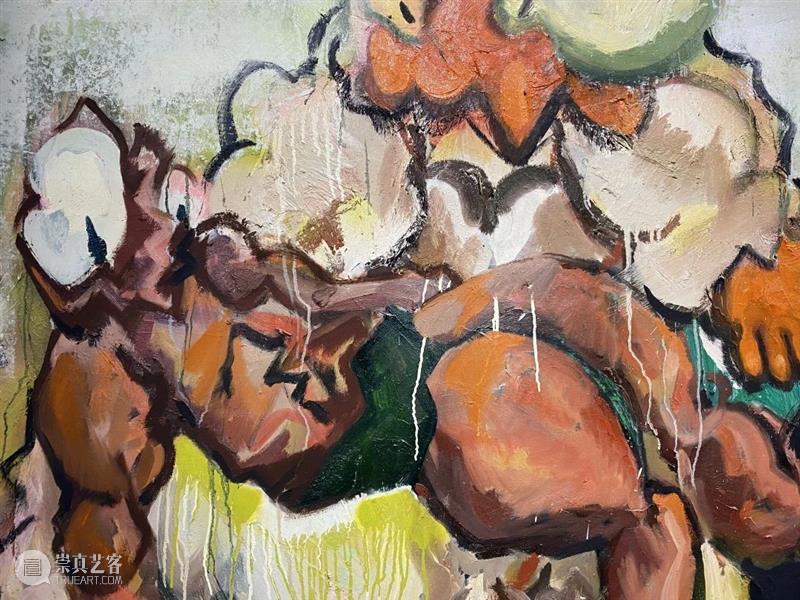 右:陈镒晗 HAM,我们只愿意抱在一起 | Only if we hug,2019,布面油画,喷漆
