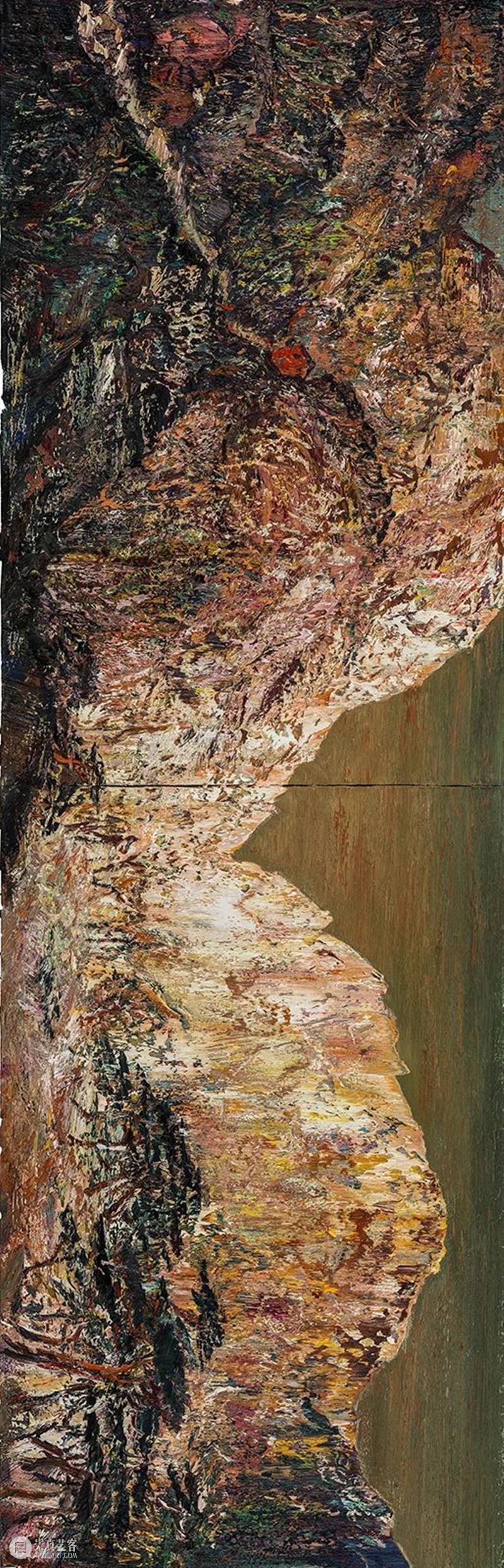 我一直觉得我画里的这些山水是非常贴切的‘精神固体’,尹朝阳 隔江山色 2019 布面油画 200×850cm尹朝阳 关山行旅 2018 布面油画 160×200cm尹朝阳 嵩谷图 2018 布面油画 300×300cm尹朝阳 嵩阳高秋 2018 布面油画 160×200cm