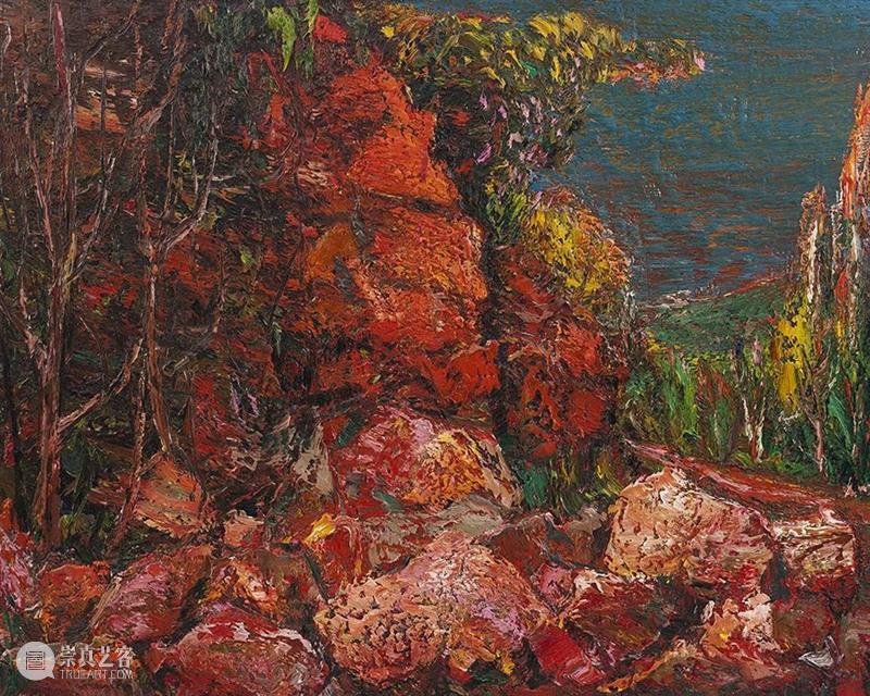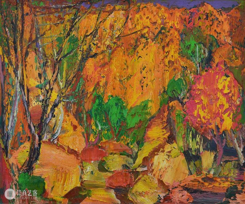 不会出现那种在人生的某个阶段蓦然回首发现故乡热泪两行的自我感动。我有点像是把自己和一种极深厚的传统生生拉扯的更紧密些的冲动。尹朝阳 七树苍岩 2016 布面油画 180×250cm尹朝阳 双树高秋 2016 布面油画 220×385cm尹朝阳 黄山谷 2016 布面油画 200×250cm尹朝阳 晴山 2016 布面油画 90×130cm尹朝阳 苍岩秋树 2016 布面油画 D.200cm尹朝阳 山松 2016 布面油画 200×350cm尹朝阳 东山谷 2017 布面油画 60×80cm尹朝阳 寒林图 2017 布面油画 250×950cm尹朝阳 红石图 2017 布面油画 D.250cm尹朝阳 红崖翠树 2017 布面油画 80×100cm尹朝阳 少室山中 2017 布面油画 131×180cm尹朝阳 晚山 2017 布面油画 180×280cm尹朝阳 天门谷 2017 布面油画 160×200cm尹朝阳 层峦 2017 布面油画 60×100cm尹朝阳 晚松 2017 布面油画 130×200cm尹朝阳 嵩岳 2017 布面油画 200×200cm尹朝阳 写生图4 2017 布面油画 30×30cm尹朝阳 写生图8 2017 布面油画 30×30cm尹朝阳 写生图10 2017 布面油画 30×40cm尹朝阳 写生图11 2017 布面油画 30×40cm尹朝阳 雪谷 2017 布面油画 120×130cm尹朝阳 飞雪岩 2017 布面油画 130×200cm尹朝阳 雪寺 2017 纸本水墨 170×250cm