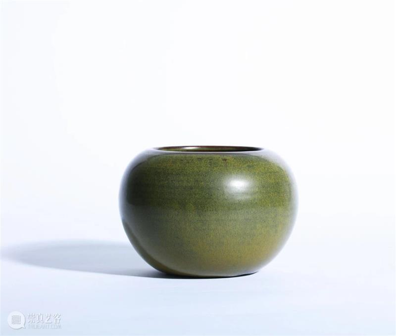 此件茶叶末釉钵,敛口鼓腹,造型浑圆饱满,下底可见六枚支钉痕,并在底心内挖隐圈足,足心露胎,并刻“雍正年制”款。此钵因用支烧工艺,因此全器满釉及底,釉面均匀,可见黄、绿相间的厂官釉结晶纹理,实为陈设佳器。