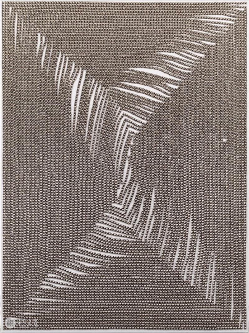 Dan Colen, Kingdom Come, 2012 Steel studs on canvas, 66 × 49 inches (167.6 × 124.5 cm) © Dan Colen. Courtesy Gagosian