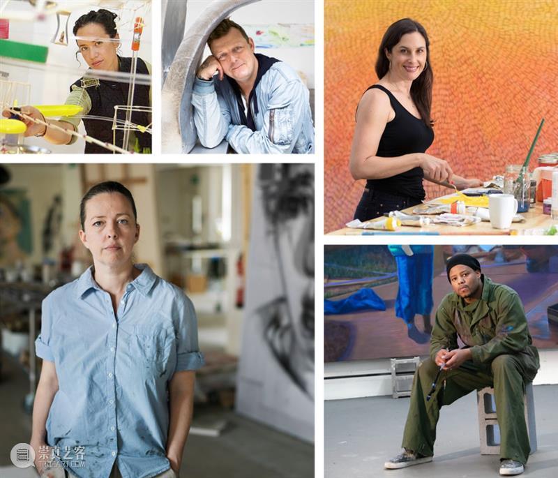 Clockwise from top left: Sarah Sze, photo: courtesy MacArthur Foundation; Urs Fischer, photo: Chad Moore; Jennifer Guidi, photo: Brica Wilcox; Titus Kaphar, photo: John Lucas; and Jenny Saville, photo: Pal Hansen/Getty Images, Courtesy Gagosian