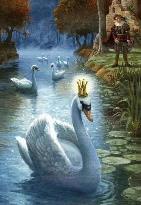 有一种说法是来自1786年出版的童话集《德国民间童话》里面的一个叫《被施魔法的面纱》的故事,作者是卡尔·奥古斯都·姆赛斯。该童话讲述了一位公主被邪恶的魔王变成了天鹅,只有得到王子的真爱才能破除这个魔咒。