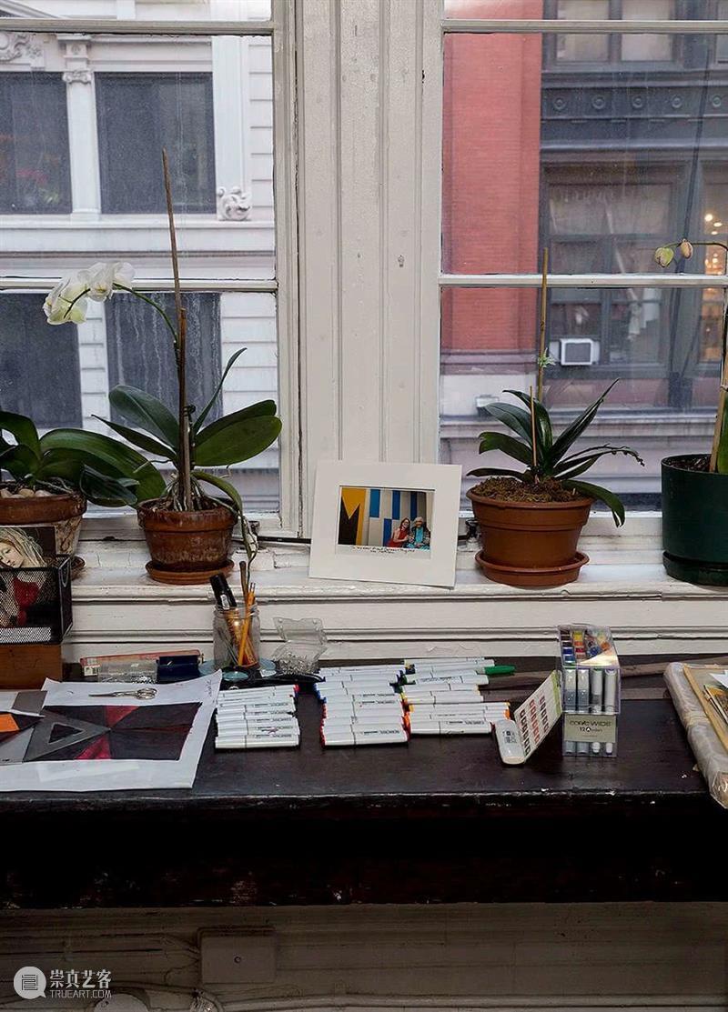 Views at Carmen Herrera’s studio美国评论家兼策展人罗伯特·斯托尔 (Robert Storr) 写道:「1967年,卡门·埃雷拉和丈夫搬进19街的工作室中,埃雷拉最初在方格纸上描绘了她的构图,然后用魔术笔填充了吸收墨水的牛皮纸,足以使她操纵色彩和色调的密度,使得每个落笔手势都像笔触般清晰。」