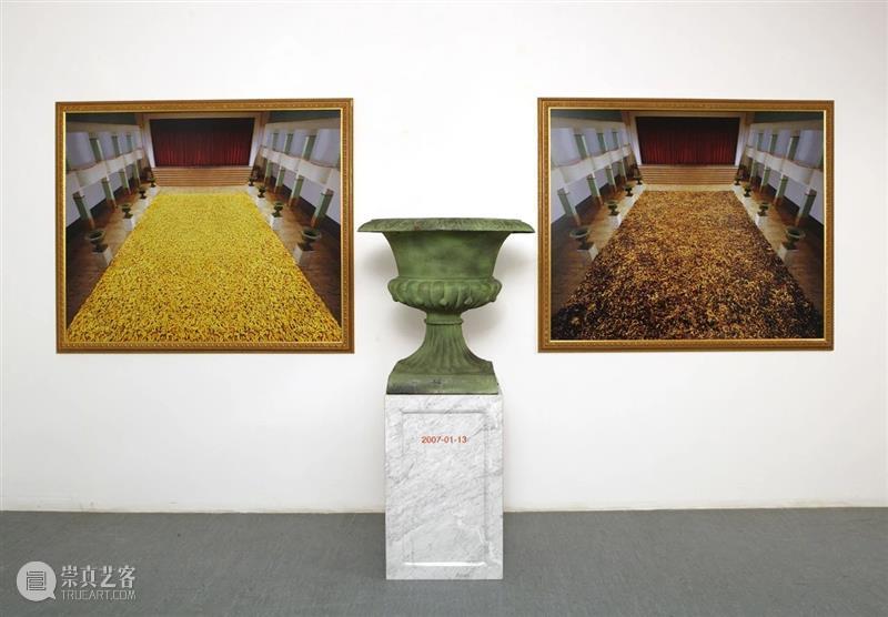 在顾德新于意大利圣吉米那诺举办的"2007-01-13"展览和法国穆林举办的"2006-09-02"展览中,艺术家选择展出了香蕉和苹果——具有强烈的性与罪相关含义的水果,这些水果在画廊空间内被参观者留下继续腐烂或被观众带走。选择使用易腐烂的材料,如肉类、花卉和水果,反映了顾德新对人类信仰的根深蒂固的坚定见解,他认为这种信仰是自欺欺人的。顾德新的作品选择不使用标题,他只是采用安装完成的时间,和其作品开始腐烂和转换过程作为一种称号,以强调作品的短暂性。顾德新1962年生于北京。尽管他在70年代后期开始业余画画,但在1986年他便举办了他的第一个个展。自1980年代末,他开始使用不同的媒介材料表达自己的作品。废弃的塑料被溶解,融合成有机结构。多年来,他在选择材料上变得更加激进。他一般不会对作品理念深入阐释,而是通过作品本身传达。他的装置作品通常具有很大的体量,并且根据场景特制,第一眼就能吸引观众,与观众形成交流,进而深入到艺术家的想法中。对于顾德新来说,艺术作为一种媒介,从来不是一种强加的想法,也不是任何一种行使权利的方式。另一方面,艺术从未在他生命中占有不可或缺的意义或位置;完美的平衡一直是被寻求和深入思考的。作为一个“艺术家”的生涯,或者说,他可能更愿意说成,作为“一个喜欢玩的人”,跨越三十多年,顾德新一直保持着坚定且谦卑的位置。起初,他努力通过与年轻的伙伴一起展览、做行为和装置来表达自己的想法,直到70年代末期,愈发普遍。之后,他又以一种“低姿态”保持一种简单的生活方式,进而得到了更广泛的认可。他强烈的感觉到,要从控制他的思想到防止狂热的艺术世界,最重要的是,他的生命。在2009年北京常青画廊的展览“被看到的是死气沉沉的”展览上,他毅然做出明智的决定,退出艺术界,顾德新决定不再参加展览,一个空的空间代表了他的缺席。三十年过去了,顾德新在中国乃至全世界得到广泛的展现,为中国的当代艺术做出巨大的贡献。