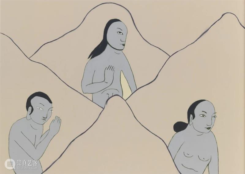 在这一组《祁连山系-16》绘画中,庄辉借用山上喇嘛寺庙的壁画,画中人与山相生,如同植物从山中生长出来,既在群山中嬉戏又困于其间,作品被显示器尺寸的画面分割成多个片段,所以作品又有了顾左右而言他的意味。将庄辉的创作视为一种向古代文人的模仿是不对的,因为作为一个现实主义艺术家,庄辉的创作并未走向任何传统文人脉络当中。壁画的展示图像来源于宗教化的神学典故,但庄辉显然将其转换为了他对现代化人与人造景观之间的隐喻。而这种困境并非是存在于遥远的祁连山的内部空间,而是庄辉利用了祁连山自然的视觉力量来比附今天现代人身处于碎片化的信息时代中内在自由的禁锢。庄辉于1963年生于甘肃省玉门县。他在十三岁时离开家乡并开始在洛阳自学绘画。1979年高中毕业后,他进入洛阳第一国营拖拉机械厂成为了一名工人。在那期间,他通过游历走访四方,亲身经历了第一手有关正在处于转型阶段的中国社会中的多种面状。1992年,庄辉组织完成了第一次也是重大的公共艺术活动《为人民服务》。1995年,庄辉在他所在的地区开始了一系列针对中国社会阶层结构根源的探究,最初是作品《一个和三十个》以及最有名的那组容纳了近百人自画像的系列照片,包括了军营部队、农庄,亦或医院等全部工作部门。庄辉也不断延伸拓展着他对于中国社会转型的检验,并转向有关社会政治问题的更大层面,譬如作品《东经109.88,北纬31.09》,还有他关于纪录自身随性而非常规生活的摄影作品《十年》。2000年后,庄辉继续创作一系列雕塑、装置,例如作品《茶山镇》与《带钢车间》,来影射中国经济发展的不良面。2006年,庄辉开始同旦儿合作,一起发起了包括“玉门计划”在内数个艺术项目;作品玉门是他们在家乡当地开设了一个照相馆,由此创作了在一个衰退城市中居民的社会肖像。庄辉开始定期走访祁连山脉,并于2014年基于他与当地景观所发生的关联开始创作新作,将其发展成为一个长期项目。近期个展包括:“公元前1650年”,新世纪艺术基金会,北京,中国(2019);参展第二届乌镇当代艺术展,乌镇,中国(2018);“祁连山系”,常青画廊,北京,中国(2017);“庄辉”个展,OCAT 当代艺术中心西安馆,西安,中国(2015)。