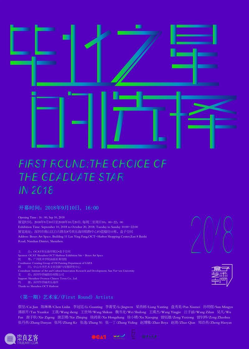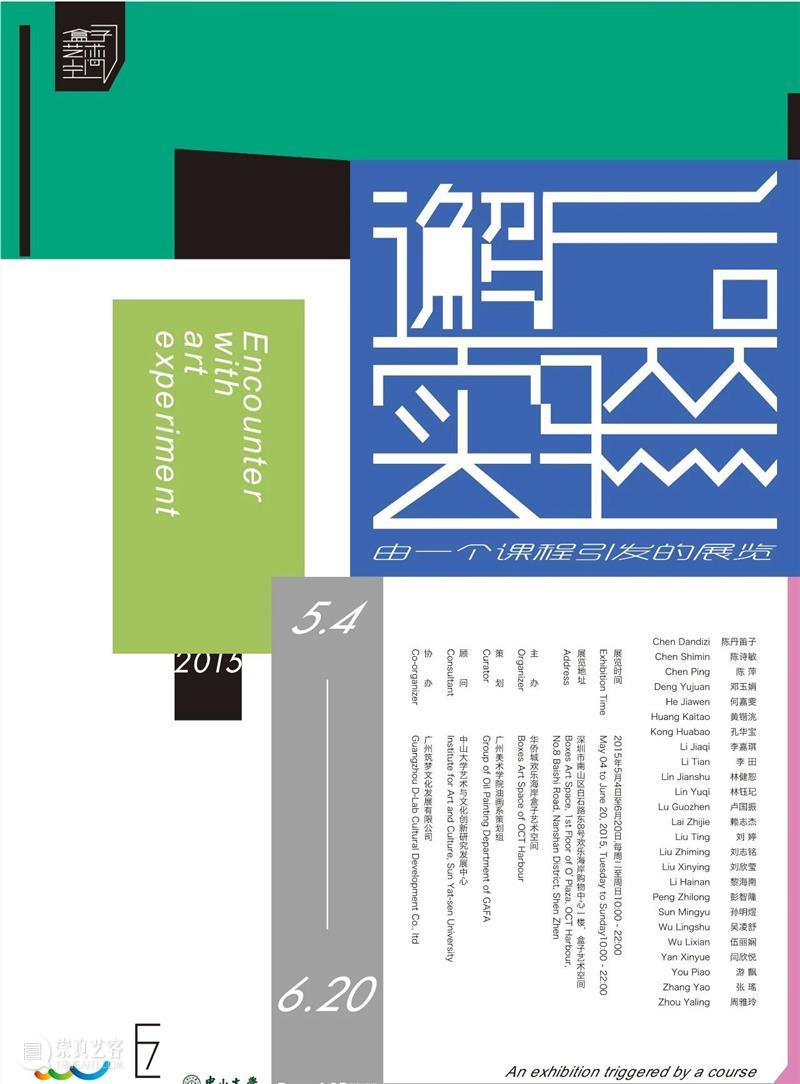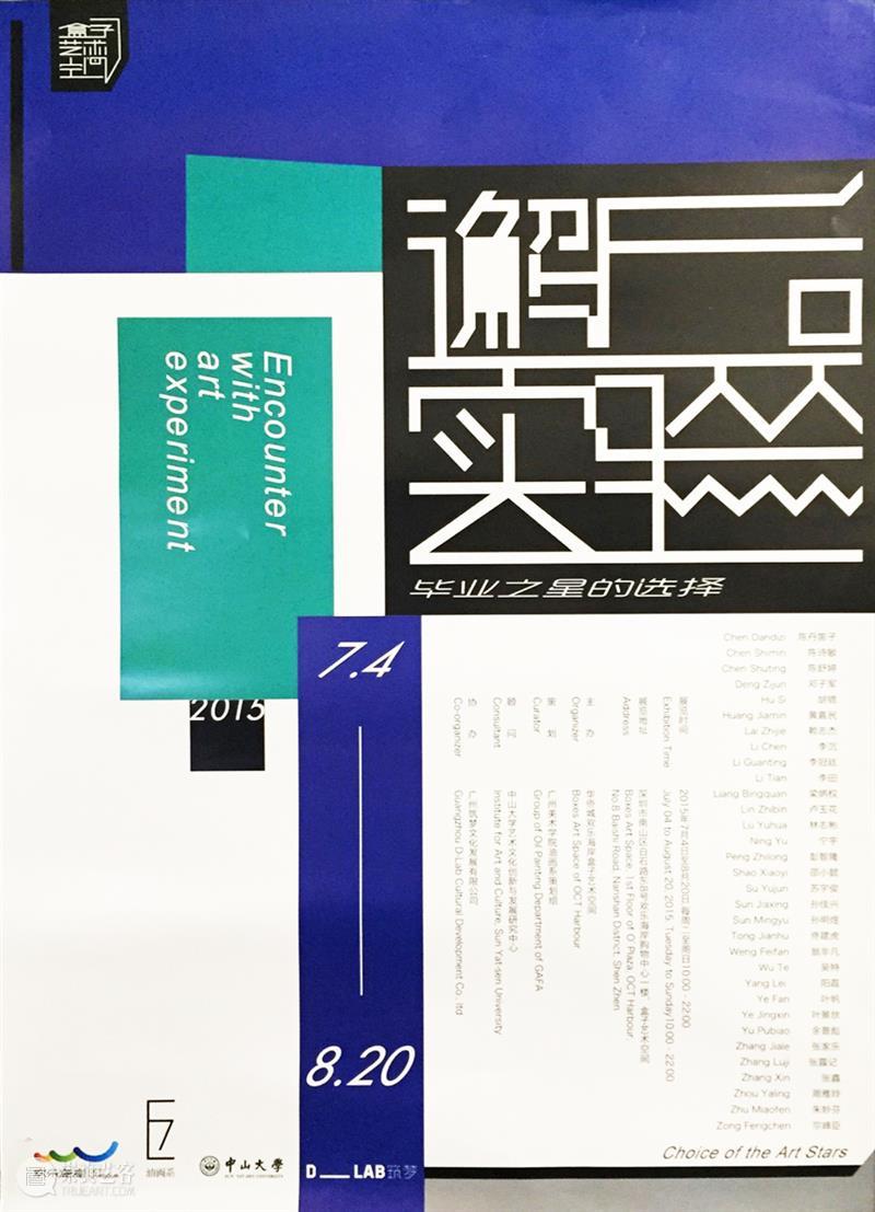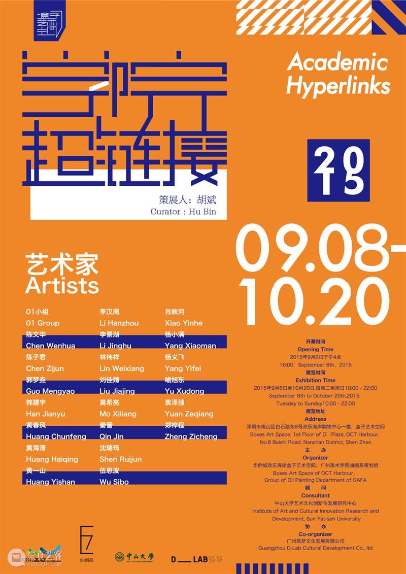 艺术家:常博文,陈若男,邓景峰,古师承,何嘉雯,何泉,金瀚,孔华宝,李逸婷,林滢滢,刘斯博,卢国振,陆子洋,罗隽,聂菊平,乔宇,乔钊,韦璐,吴凌舒,吴素珊,伍宇豪,香智杰,谢凌峰,谢少亚,游飘,于达禾,张贝贝,张璟陶,赵宇,周启涵,朱湘