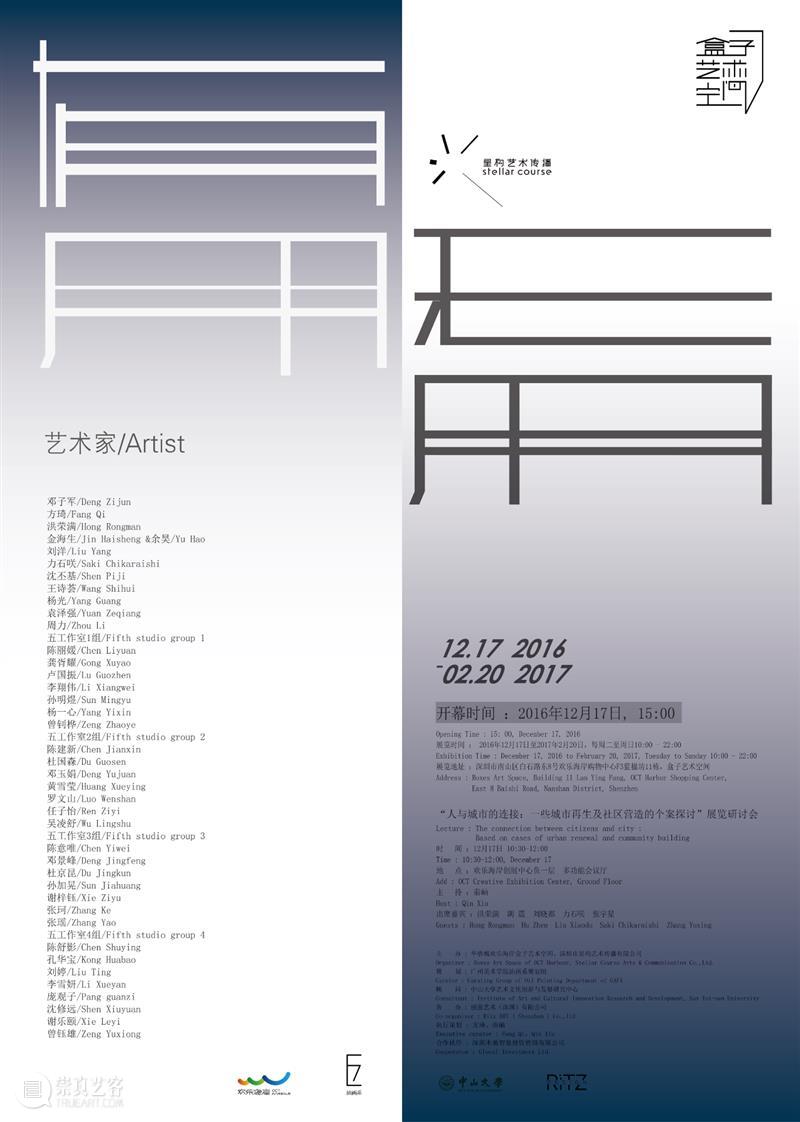 艺术家:包晓伟,邓悦君,冯琳,胡佳艺,胡尹萍,李琳琳,李怒,梁半,廖斐,林芮襄,麻剑锋,马文婷,万朵云,谢淑婷,杨牧石,艺本道委员会,于艾君,钟嘉玲,宗宁