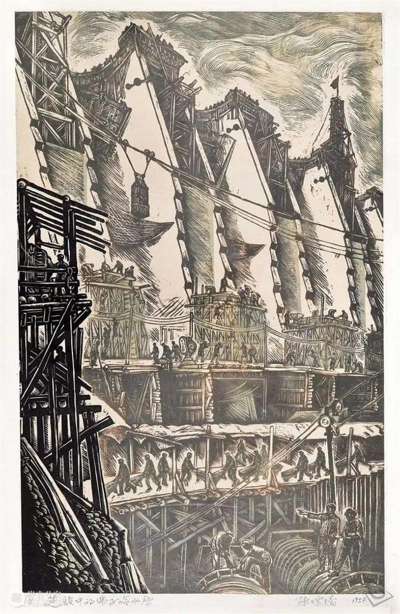 第五,在套色木刻版画《解放上海》(与蔡振华合作)、《建设中的佛子岭》《工地》《制造汽轮机》《长江初冬》等作品中,满腔热情赞颂祖国的解放和新中国的建设。