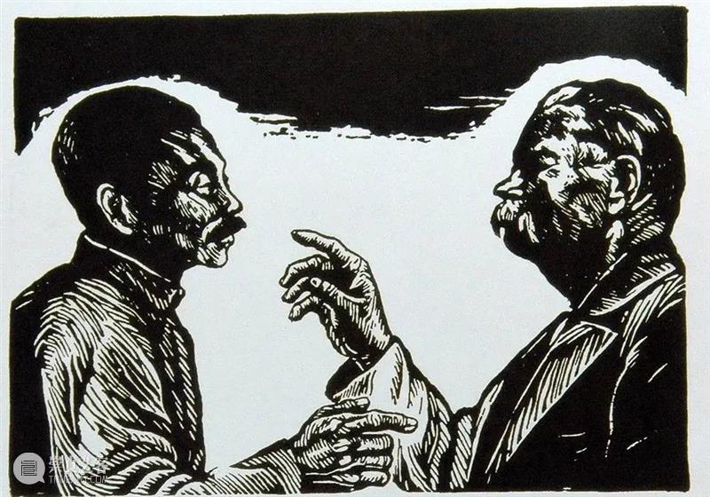陈烟桥接近鲁迅,首先是阅读鲁迅编辑岀版的《近代木刻选集(一)》《近代木刻选集(二)》,既形象地欣赏感受到欧洲的“创作版画”(又称“创作木刻”)是怎样一种版画艺术,更见识到鲁迅在《近代木刻选集(一)》《近代木刻选集(二)》的《小引》中深刻地分析了中国传统的“复制版画”(又称“复制木刻”)与欧洲“创作版画”的关系和区别。鲁迅指出,中国传统木刻版画的兴起和发展早于欧洲,而欧洲的“创作木刻”,实际上是中国的“复制木刻”传到欧洲后才推进到“创作木刻”。“创作木刻”版画,因为是由画家一人完成画稿、刻版和拓印全过程,不仅创作速度快,而且便于形成版画家具有个性的艺术风格。因为欧洲“创作版画”有上述优点,所以鲁迅将其引进来,称之为“木刻的回国”。引进欧洲“创作版画”目的是使中国“复制版画”(即画家作画稿,刻工刻版,印工拓印三者分工完成)的创作方法得以更新。鲁迅还说,木刻版画的创作,是“作者捏刀向木,直刻下去”,“这放刀直干”,便于产生“有力之美”。陈烟桥见到鲁迅先生如此高瞻远瞩地论述和倡导在中国发展木刻“创作版画”,而折服和敬佩,于是铁定決心做鲁迅的学生,跟鲁迅先生开展新兴版画运动。