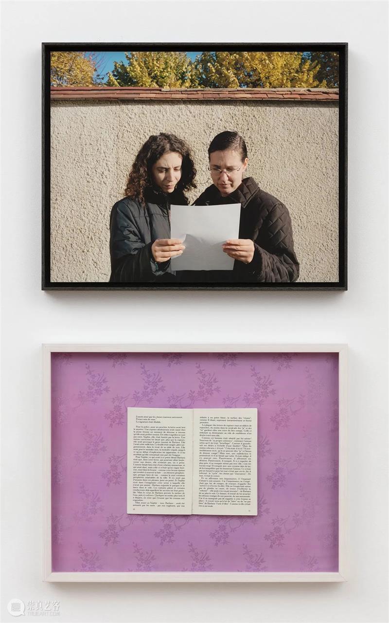 从左至右:Take care of yourself. Romance writers, Anne et Marine Rambach / Prenez soin de vous. Auteures de romans sentimentaux, Anne et Marine Rambach, 2007. 彩色打印、文字、画框. 摄影:43 × 53 cm. 文字:41 × 53 cm
