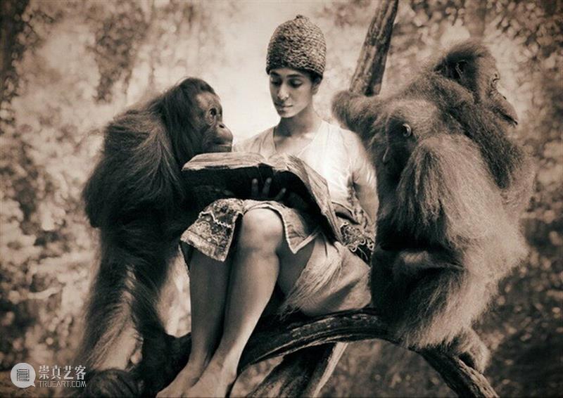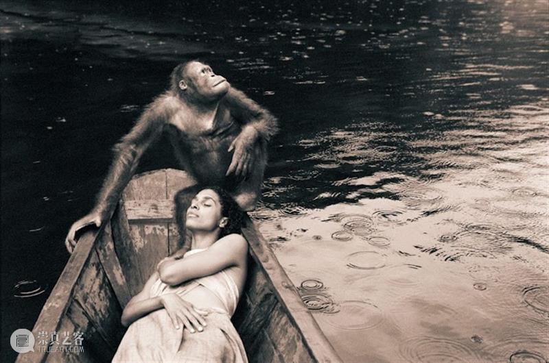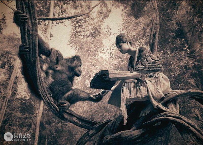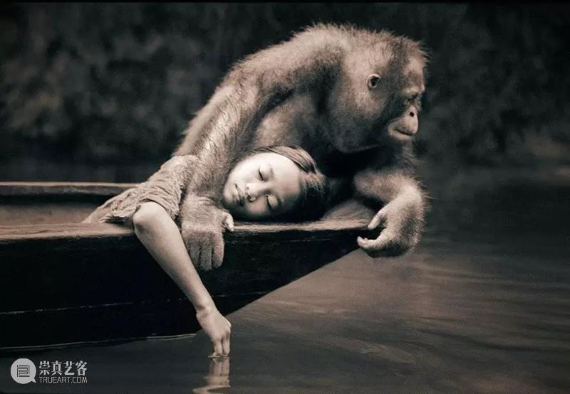 猴子深情地注视着女子,
