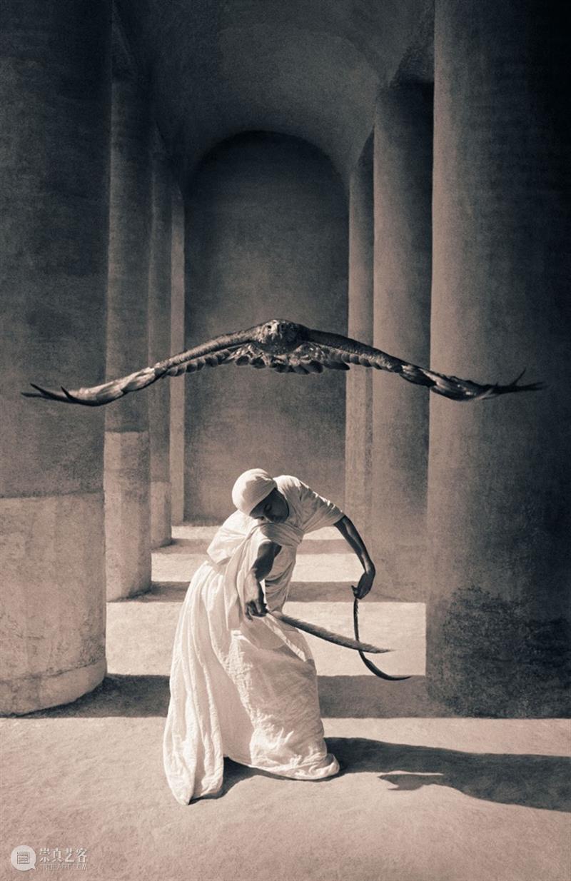 老鹰飞过寺庙柱廊与人共舞···