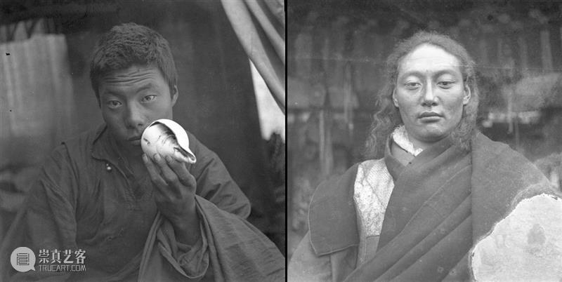 图13-14,吹法螺,贡马桑活佛,庄学本1934年第一次羌地考察期间摄在这种语境下,摄影观看并不是图像式的掠夺,而是一个围绕摄影的物质性形成的交换网络。庄学本早年大部分肖像作品的第一批观看者,是他的拍摄对象和当地的社群。一些被摄对象看见自己的照片后,会把家人带来让庄学本拍照,因而冲洗好的照片作为可流通的图像将更多的拍摄对象纳入这个交换网络。除了照片本身外,照相过程的副产品也重获交换价值,作为摄影师换取更多影像的货币:一群女孩曾向庄索要胶卷外壳,他便以让她们同意被他拍摄肖像作为交换条件。庄学本在被请去阿坝拉摩寺调解战争时,曾被要与当地小土司结拜兄弟。庄当即提出可以与小土司合影一张,“各执一纸”作为结拜仪式,只因小土司因祖母被黑教咒死,已宣誓不照相而作罢。在这个交换网络中,摄影图像的可复制性甚至被创造性地重新赋予象征意义(虽然被另一套更有震慑力的象征系统所拒绝)。由此可见,在庄学本早期的摄影实践中,摄影的真实性建立在“直面”的观看方式上,而田野中的“观看”是一个双向甚至多向的行为。“观看”创造出来的图像并非直接流向都市的画报,而是通过实地拍摄并冲洗的照片建立、见证了许多在地关系。记录此次旅行的《羌戎考察记》在编排照片时,就在解说中保留着肖像所呈现的人物和地点之间的关系,是一份遵守个体经历的时空顺序的旅行纪录。民族的可视化