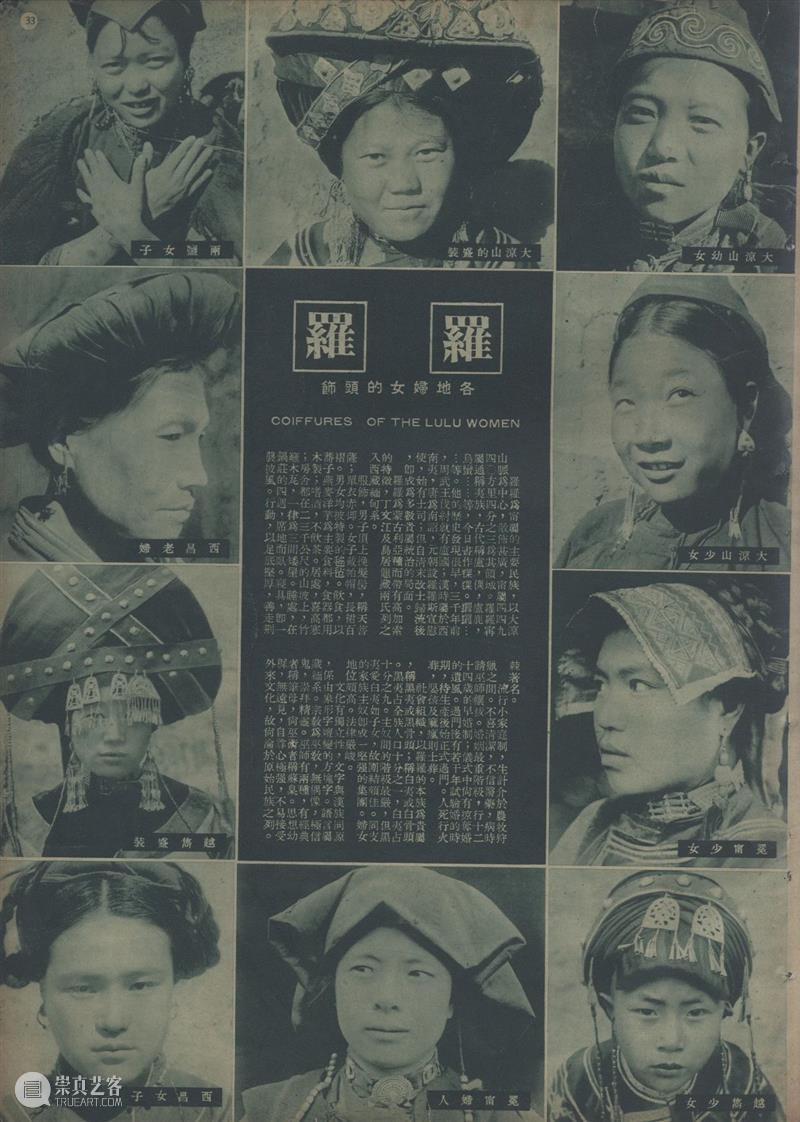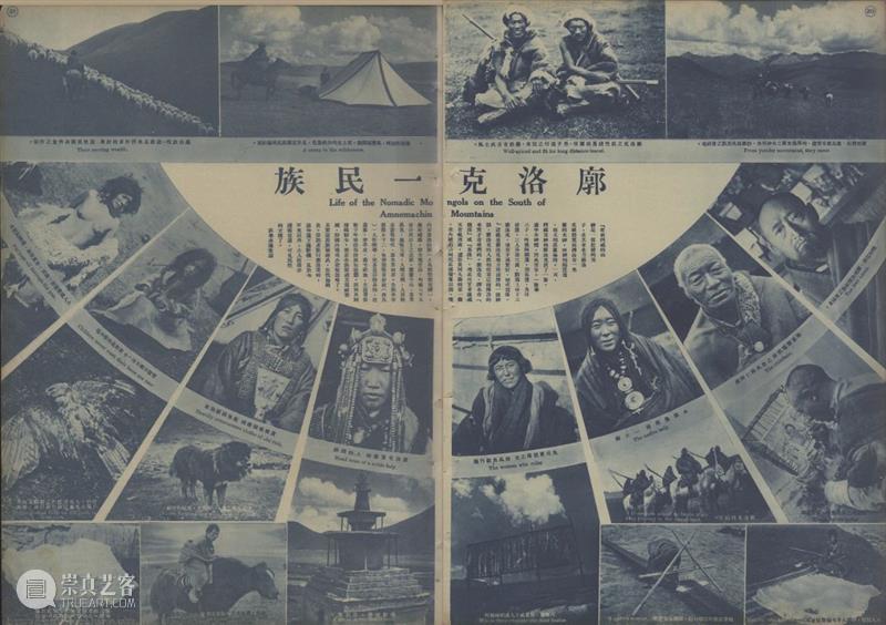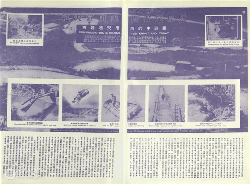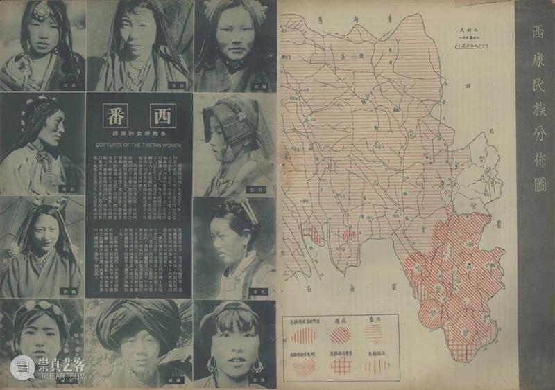 同样是剪辑和编排庄学本拍摄的肖像,对比出版于1935年的第108期《良友》(图15)和1940年作为宣传西康建省成果的《新西康专号》可以发现,前者呈现一幅充满异域风情景象,而后者试图传递的是分门别类的边疆知识。108期《良友》中,画面中间是一排以女人和部落政治、宗教领袖为主的肖像,周围散落着并未具体标示地点的景色和习俗的照片。这些照片统统被排进画面中央的一个弧形的网格,仿佛一个旋转着的万花筒,随时可以从碎片式的视觉材料中抓取新的图像组合,来呈现这个 “数千年来仍保持原始状态”的地区(图16)。图17,《新西康专号》,1940年,图片来自全国报刊索引《新西康专号》中,这种对一个亘古不变的“土人”文化的猎奇,转变成一种通过分类和分布图来准确描绘边疆民族人口的尝试(图17)。[4]《新西康专号》用横平竖直的网格来编排肖像,唯被摄对象所在地(而不是具体的部落或身份)被留下作为每张照片的标识,对页即庄学本绘制的“西康民族分布图”。这种编排方式,让肖像中的脸孔不再单纯地指向个体身份或个体时间之外的文化,而指向(index)对页地图上的某个城市,是那些城市的身体化呈现(embodiment)。每张脸孔(face)被标准化地裁剪,截去任何可透露个人信息和拍摄语境的背景,成为尺寸统一的物质文化展示架,一个被文化书写过的表面(surface)。这种图文关系和图像处理方式为一种可定位、可固定于西康省领地内具体地点的民族性(而不是一个笼统的国族想象中的边疆)提供了肉眼可见的一手信息。图18,《新西康专号》上介绍“罗罗”族的版面,1940年,图片来自全国报刊索引但这些极具科学性[5]的视觉信息呈现方式,试图描绘的并非当下的事实。庄学本在展出这些照片时曾指出,《专号》中所标记的西康省的六个民族“西番” 、“羅羅”、“麼些”、“夷”、“傈僳”、“苗”(图18)并非严格意义上当地族群的自我认同,也不是既有的族群分类——这些自发的分类中许多都是“同名的异称”,是可以统一归为以上六个族群之一的。这也意味着,曾在1934年被庄学本的亲历式人像摄影所“看见”过的文化差别,在1940年的《专号》中变成亟待重组和整合的对象。正如《新西康专号》的“编辑者言”提到,这册专号的目的是“使外界认为神秘的这个边区……能够获得一个较为准确的轮廓,进而引起研究和开发的兴趣”。这句话言下之意即是希望《专号》中提供的视觉信息可以形成某种看待西康尤其是其民族多样性的方式,为接下来的知识生产提供方向、框架。这一方面把庄照片中似乎亘古不变的景象放置于一种从过去通向当下的时间线中,一如《专号》中包含的始于汉朝的西康边地治理历史中(图19),把西康省看作这一过程的继承者,而影像所呈现的都是有待现代化的治理对象。另一方面,这种借庄学本照片所达到的纪实的、对当下的描绘、对当下某种景象的再生产(reproduction),也试图通过改变观看的方式,去生产(produce)一种可能的、民族融合的未来。图19,《新西康专号》中描绘西康地域和西康地区历史的版面,1940年,图片来自全国报刊索引《专号》对庄照片时间性的干预和图像生产力的期许,可以体现在一个题为“跃进中的西康交通建设”的对页中(图20)。这张对页可视化了上文提到的、从“前现代”文化通向现代治理模式的通道:公路。对页的背景是鸟瞰视角下,正在修建中的川康公路。蜿蜒公路上的汽车和对页下半部分一排照片所呈现的几种“旧式”交通工具相呼应。这一排照片中,许多都曾在画报上发表(如图6),展现某个部族或区域独有的交通方式。图20,《新西康专号》中题为“跃进中的西康交通建设”的对页,1940年,图片来自全国报刊索引在《专号》中,这些被消除了文化、族群标记的交通方式,已经预示了它们无法避免的命运:随着西康省的建设和公路的建成,随着对页右上角那些汽车的上路,这些在高山峡谷间摇摇欲坠的交通基建最终将被取代;而被自然天险分割所形成的族群界线,也将在公路带来的连通性中逐渐瓦解,让位于省长刘文辉提出的“加强民族联系”的治理目标,最终形成一个跨民族的省际认同——“西康人”的身份。庄学本主体性转变背后摄影图像自身的时间性和所指的变化,受制于希望通过它们展现的关于“民族性(ethnicity)” 的知识。《专号》通过对庄学本照片的编排所表达出的对民族多样性的重组和整合,暗合了战时一部分边疆研究学者们对于“民族性”态度的转变。这一转变尤以曾与庄学本频繁来往的顾颉刚为代表。1926年,作为中山大学语言历史学研究所的创办人之一,顾颉刚和当时的中山大学文史科主任傅斯年是最早一批主张用人类学实地调查的方法研究西南诸多民族的知识分子。然而1939年,面对内忧外患,顾颉刚发表于《益世报》的文章《中华民族是一个》则表达了对过度使用“民族”这个词、“立民族之名,招分化之实”(傅斯年语)的担忧。这种说法意味着把政治团结建立在族群间文化和语言差异的消融之上,而后者正是西康省亟待解决的问题。1940到1942年庄学本编辑《专号》、准备影展期间,和顾颉刚在重庆会面多达十次并共商“边疆学会”的准备工作,也许已暗示庄对民族性的主张颇受这种思潮的影响。至此,庄学本的摄影作品完成了从亲身经历的纪录到视觉知识的转变。这个转变的过程暗