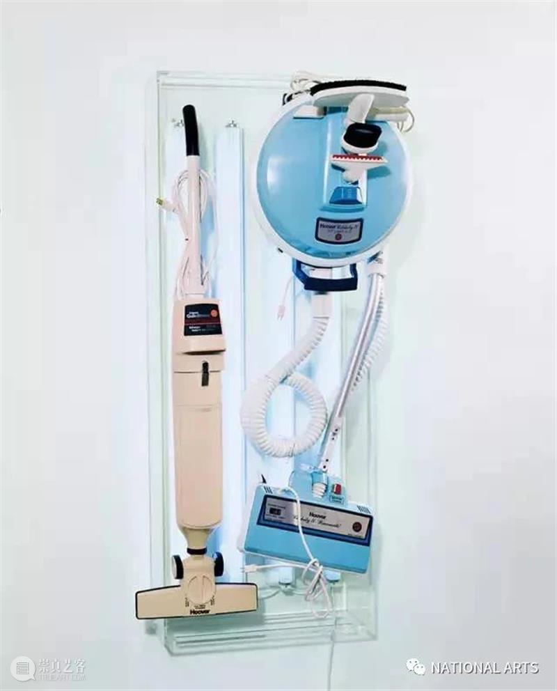 ▲杰夫·昆斯《新胡佛名人4号》142.2×55.9×48.9cm 2个吸尘器、丙烯酸、荧光灯 1980