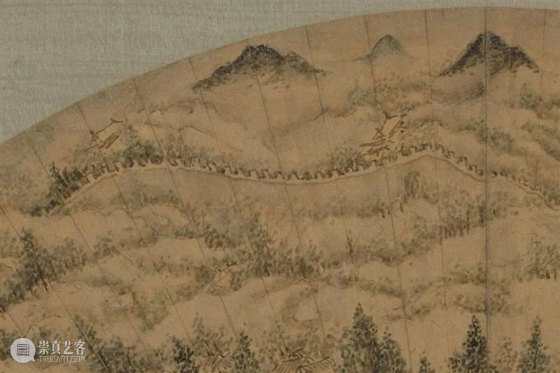 晚明苏州画家袁尚统的《访道图》(原名《山水》),构图饱满,设色丰润,在吴门派的细笔密皴中融入了浙派的大石巨岩与宋人的小斧劈皴,故有屏风的气势。