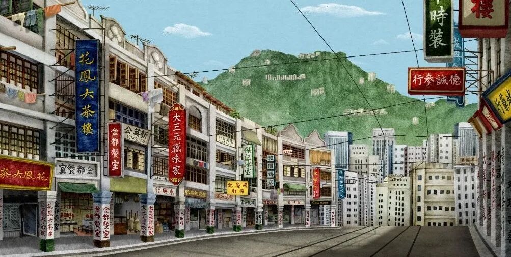 「第一批铅笔稿出现的时候,我看到戏院的广告牌、街边的小吃、西环石板街道、半山的榕树墙根,还有香港大学、希尔顿酒店、皇都戏院、太平馆餐厅……真个似水年华。每一笔都是心血,画在宣纸上,在电脑上拼凑起来,再渲染色泽,那么多消逝的香港地标,又重新在自己的影片中重生,那种喜悦却是难以形容。」