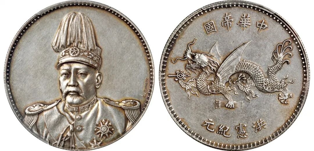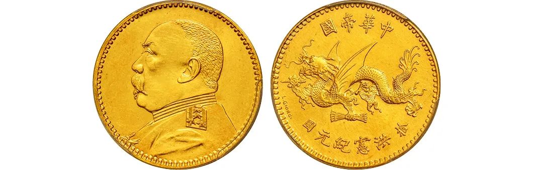 实行金本位制,一直是晚清及民初官方币制改革的目标,朝代更替,发行金币的构想也并未改变。1915年12月12日,大总统袁世凯欲改民主共和政体为君主立宪,登极称帝,定国号为中华帝国,年号洪宪。“洪宪纪元”拾圆金币,就是财政部为配合袁世凯登基,而准备发行的一种金币,俗称“小飞龙金币”,由天津造币总厂意大利籍总雕刻师路易·乔治(Luigi Giorgi)刻模。据相关资料记载,金币的币模雕成之后,仅压印了极少数成品送到大典筹备处,但不久帝制撤销,金币遂停铸,铸额极少。