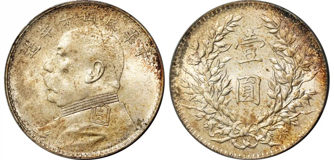 民国十年袁世凯像竖点“年”实口“造”版壹圆银币/PCGS MS63