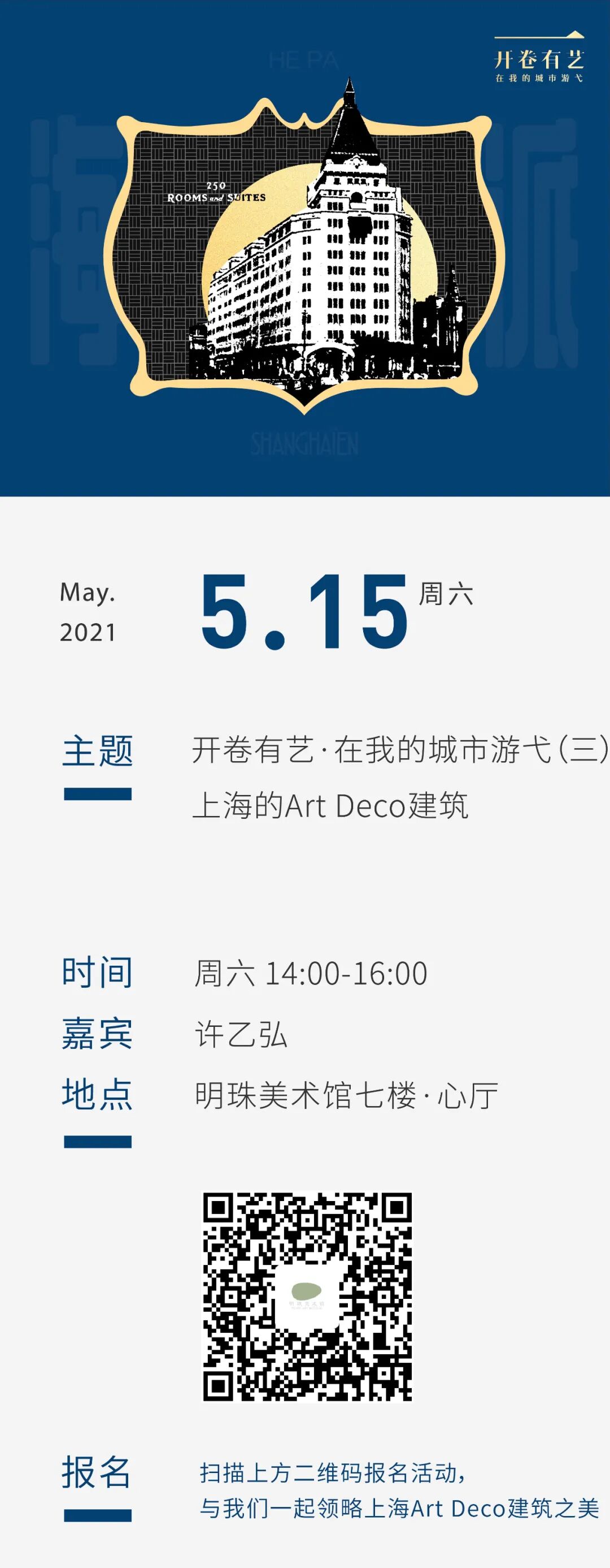 5月15日(本周六),同济大学设计创意学院副教授、建筑学博士许乙弘将做客明珠美术馆·心厅,和我们一起“漫步”上海街头,在鳞次栉比的都市建筑中寻觅Art Deco建筑的身影。通过探讨Art Deco的定义、流变、其对20世纪设计及对上海的影响等问题,以支撑城市“骨骼”的建筑为出发点,回溯海派文化中东西文明与艺术的交流与碰撞。