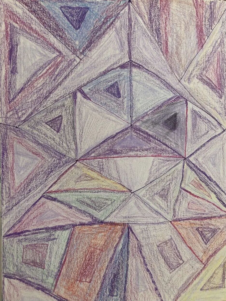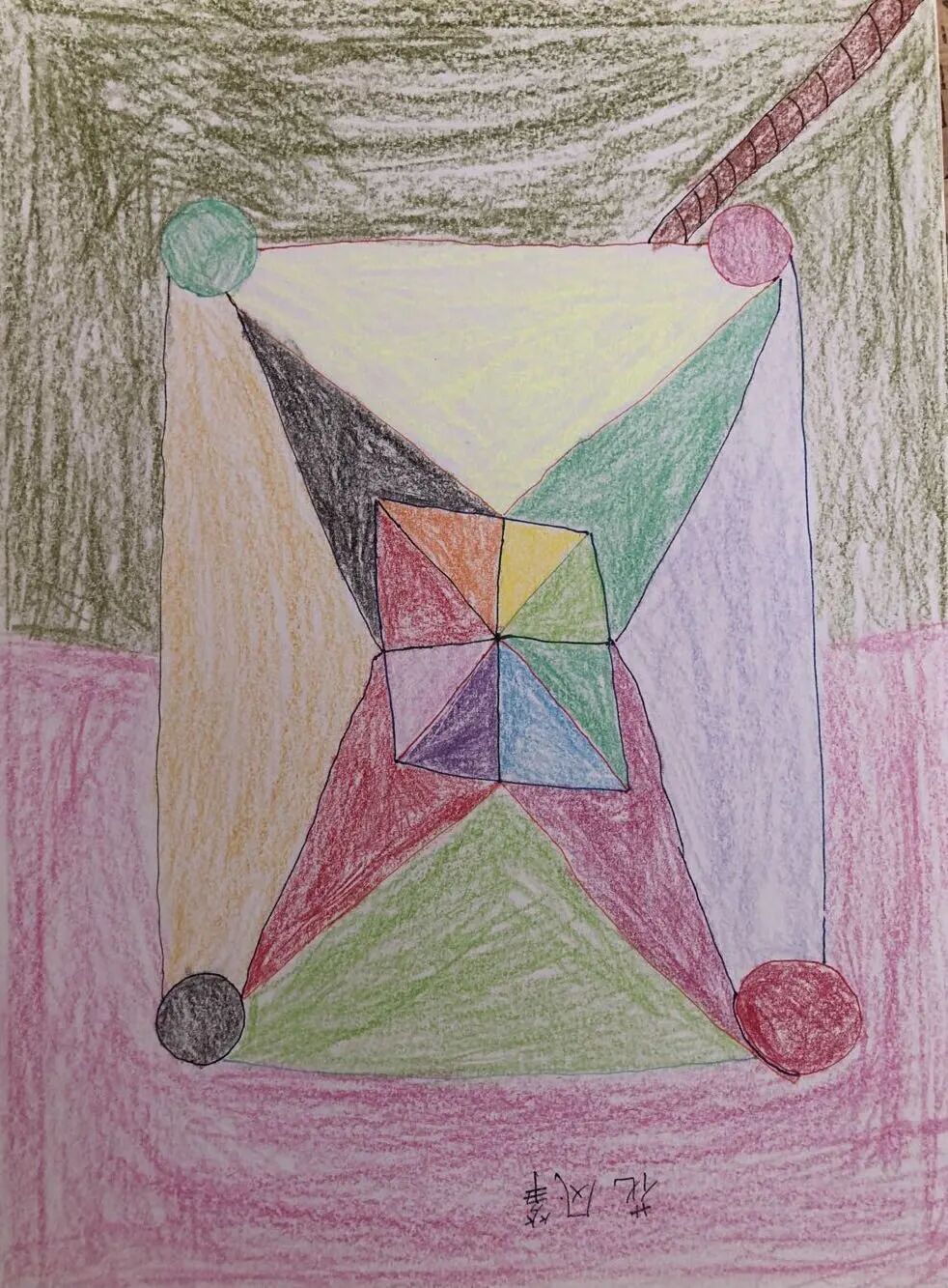 《紫色金字塔》——这幅画菡菡画画停停,她说:“妈妈这些紫色都是不同的,我需要想清楚再画......”