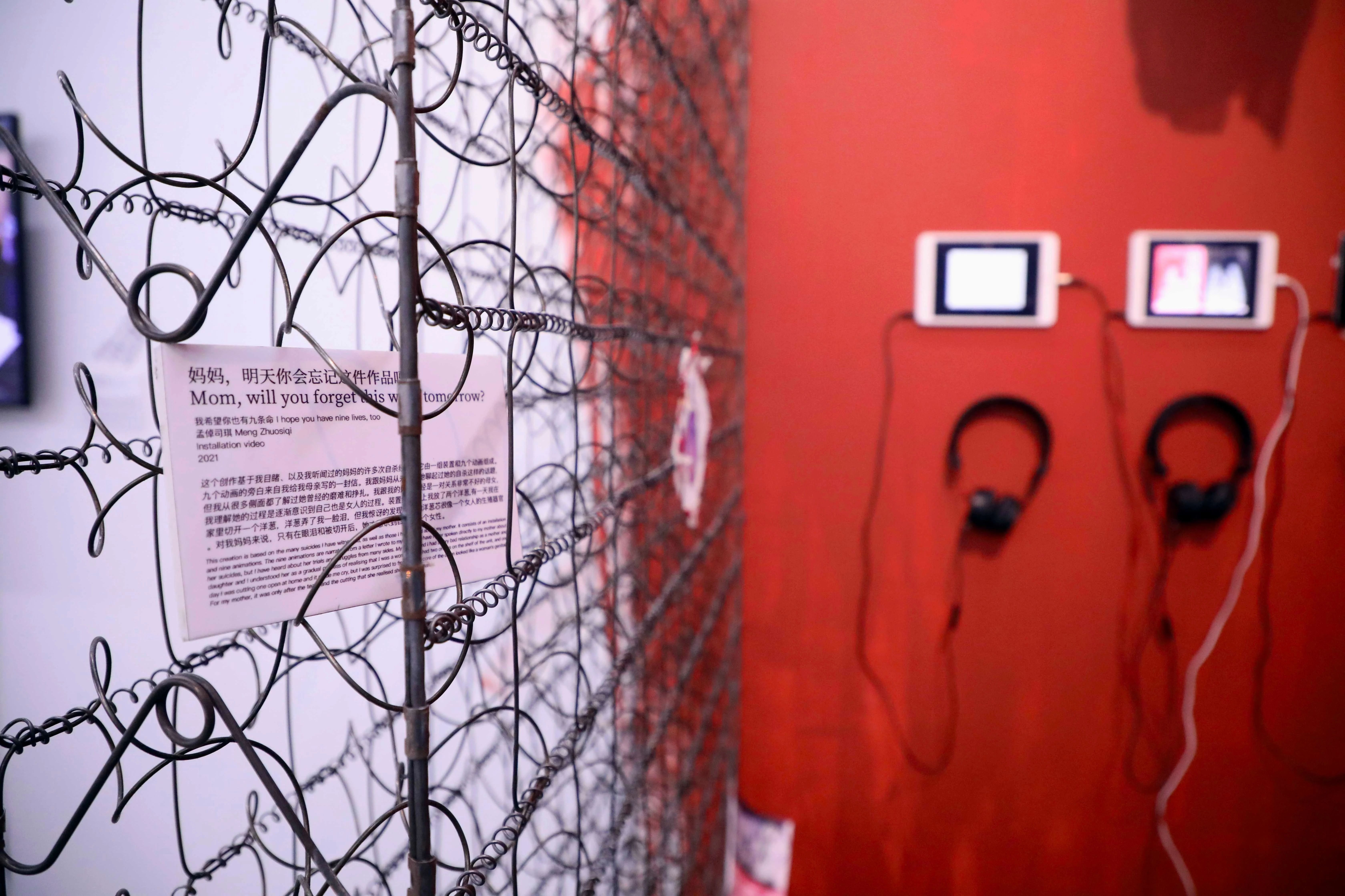 Mum came to see the exhibition today, but she kept saying it was no good just after she arrived at my booth, saying it felt very uninteresting and that she liked Liu Bowen and Li Guochen's. She left without watching any of the nine videos, saying she couldn't understand them and asked me to ask the audience if they could understand them.