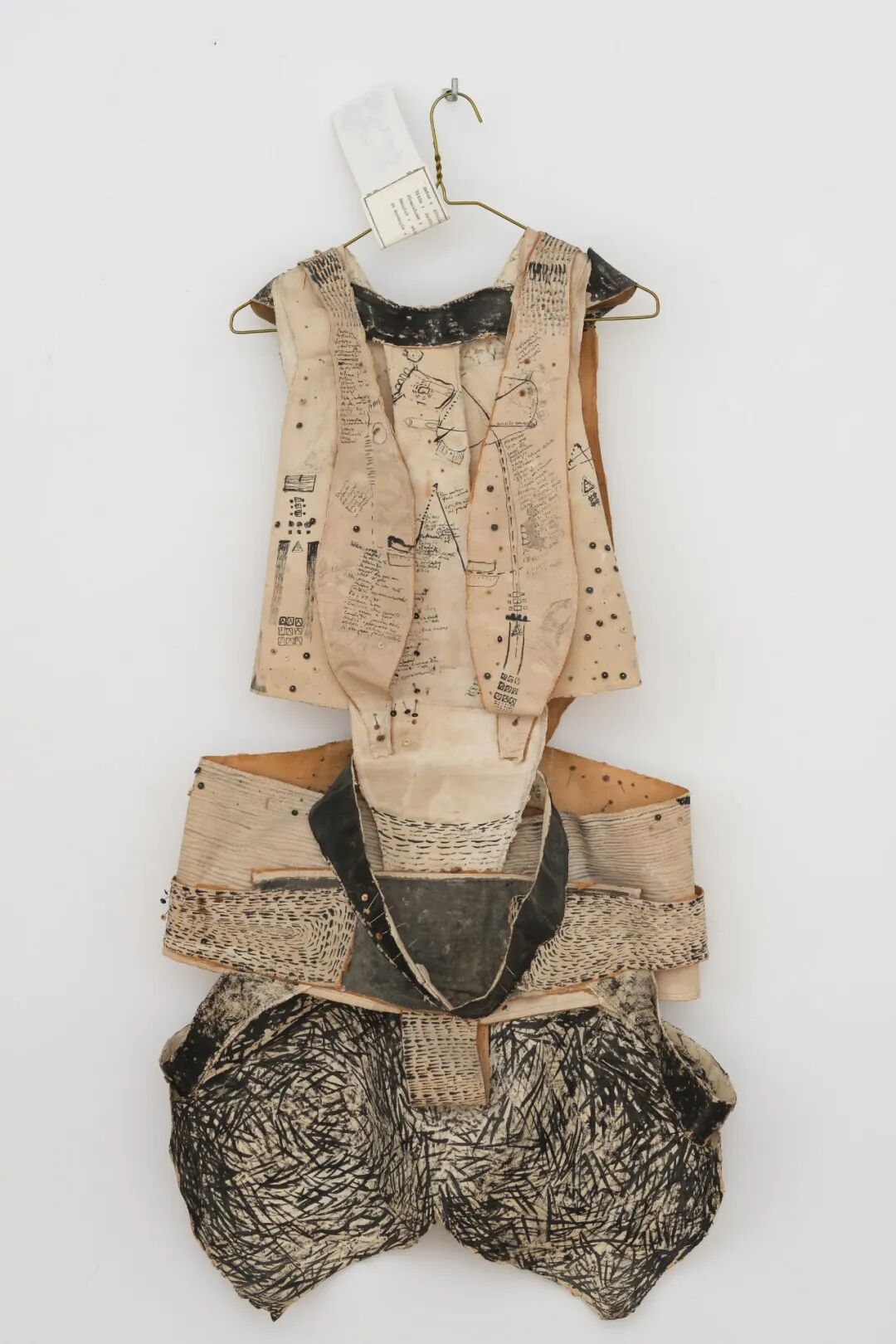 除了表演作品的照片,展位还将呈现她的《Costumes (Maps of Impressions)》——这是一件使用她在公众表演中曾穿戴过的纺织品、纸浆、报纸和书籍创作而成的雕塑混合媒介服装。