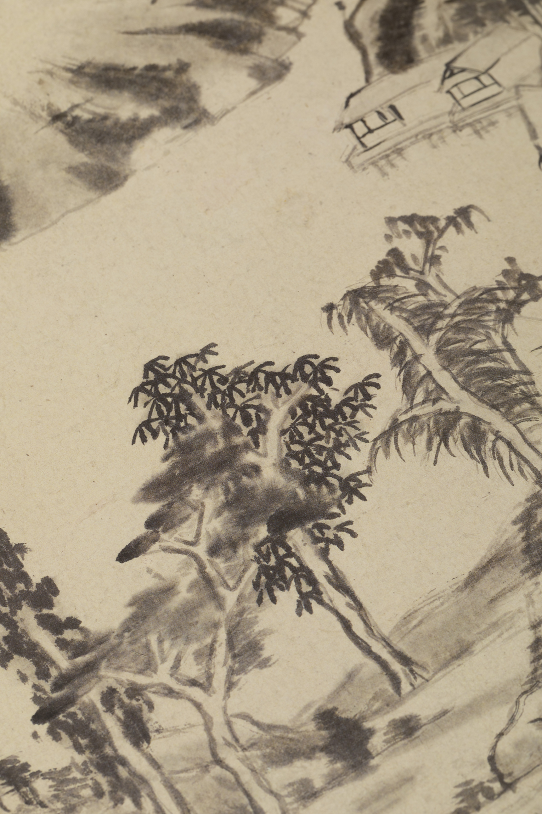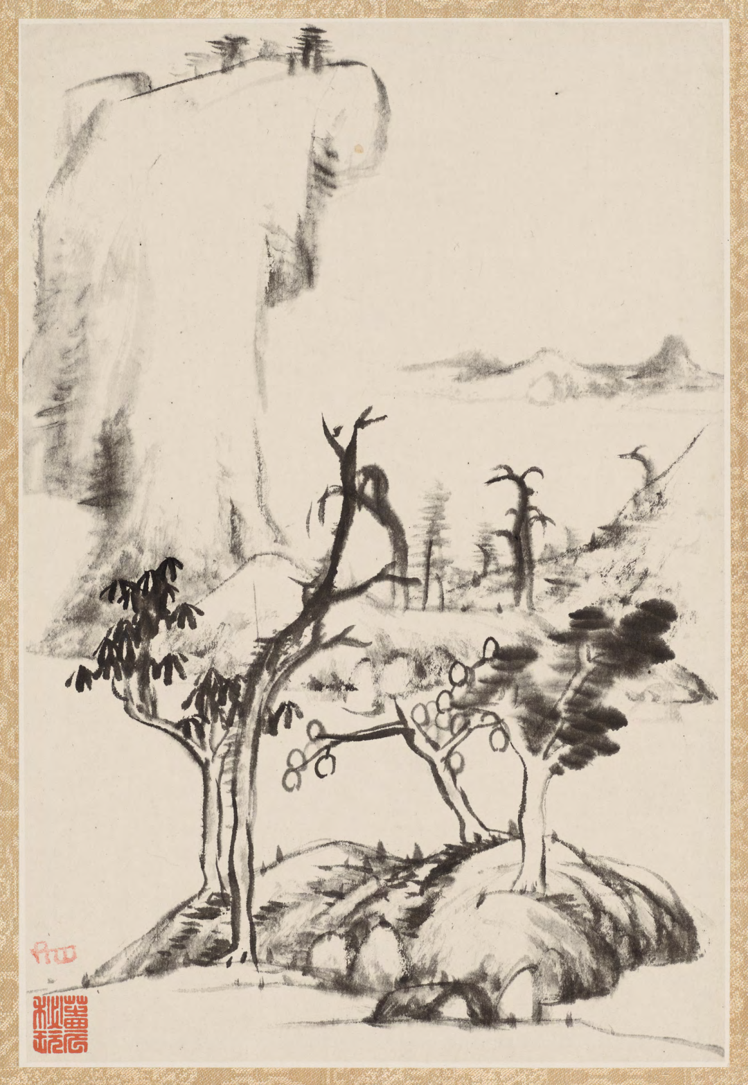 从构图上来看,此册中第一开、第三开、第四开取法自元代黄公望,采用“高远”构图形式,在远山的处理上辅以“深远”的变化,尽显山峦叠嶂之崇峻与树木虬结之苍茫。