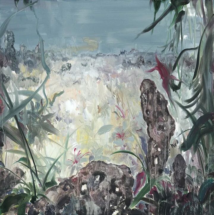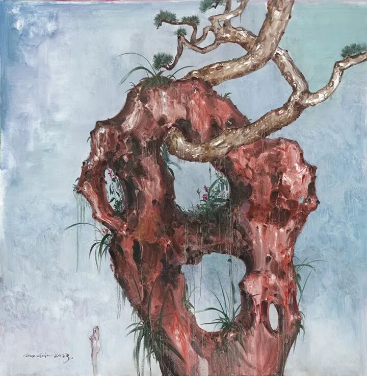 《红太湖石与松的陪伴》161X161cm 布面油画 2023年