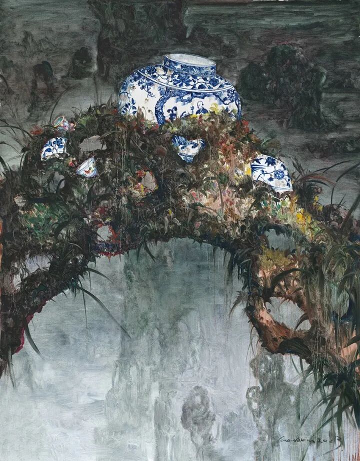 《月光下的青花瓷》 161X202cm 布面油画 2023年