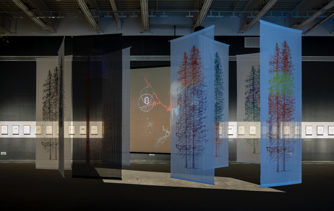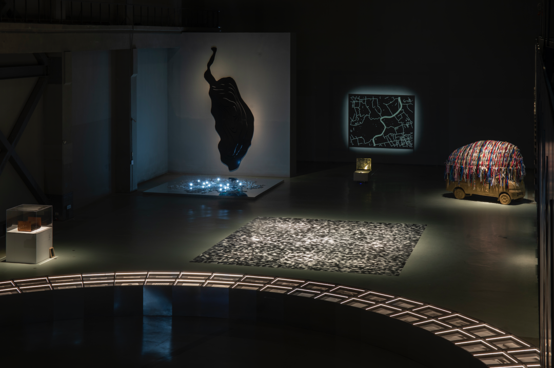 展览由此分为九宫。地一宫“星际自由移动”将外太空作为滋养生命物质与精神力量的根本。地二宫“偏蚀”着眼于隐藏在视线之外,晦涩难懂,甚至不可知的宇宙现象,挑战那些局限我们体验世界的二元结构。