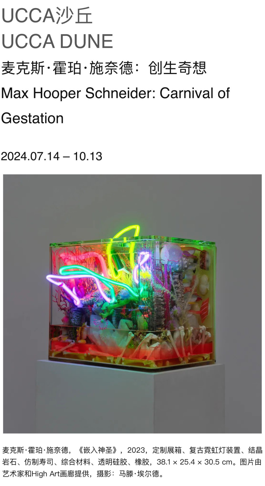 UCCA沙丘美术馆呈现展览“麦克斯·霍珀·施奈德:创生奇想”。本次展览为艺术家在中国的首次机构个展,呈现霍珀·施奈德自2014年至今创作的近30件涵盖多元媒介的雕塑、装置和影像作品,其中6件为UCCA委任创作的全新大型作品。通过构建或模拟没有人类存在的独特生态,艺术家呈现了看似毫无关联的世界、物种和存在之间的联系,使生命与非生命、有机物和无机物之间的界限变得模糊,进而挑战人类中心主义的观看和创作方式。