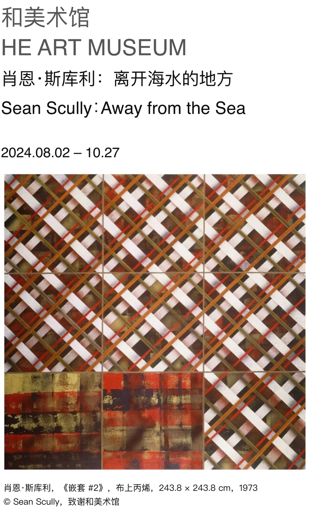 和美术馆呈现当代艺术家肖恩·斯库利(Sean Scully)大型个展“离开海水的地方”,展出艺术家自20世纪60年代以来,横跨超过半个世纪的40组绘画及雕塑作品。