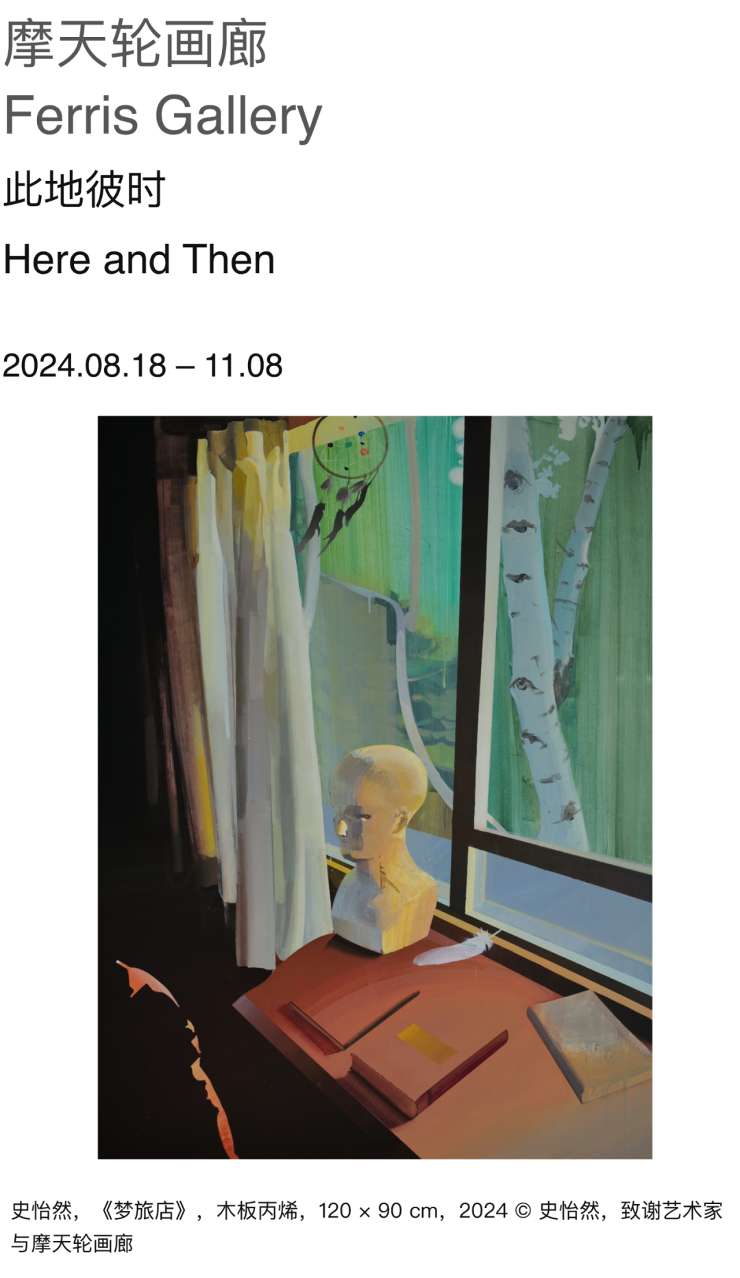 摩天轮画廊欣悦呈现史怡然与黄宝莹双人展“此地彼时”,展出两位女性艺术家共14组、18件画作,其中11组、15件为首次展出的新作。具体且复数视角的室内场景在这些画面中逐一打开,观者受邀穿越多时态并置的心理时空。没有人物出现在任何一幅画面中,但观察者既创作者的第一视角,将渴望异域认同感的鲜活目光,呼吸进有限的画面,扩充其向外延展的弹性。