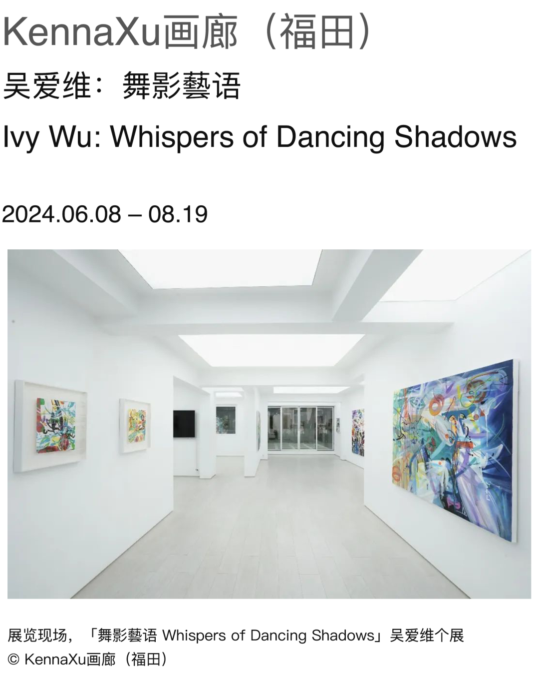 KennaXu画廊呈现「舞影藝语」吴爱维个展,精选展出艺术家吴爱维2022年及2024年创作的24件作品。吴爱维的抽象艺术作品中,充满了对形状和线条的探索。她的作品常常不依赖具体的形象,而是通过形状和线条的组合,创造出一种独特的视觉体验。这些形状和线条,有时犹如山川起伏,有时又似流水潺潺,展现出一种无法言喻的美感。这种对形状和线条的探索,使她的作品具有了强烈的视觉冲击力,让人过目难忘。