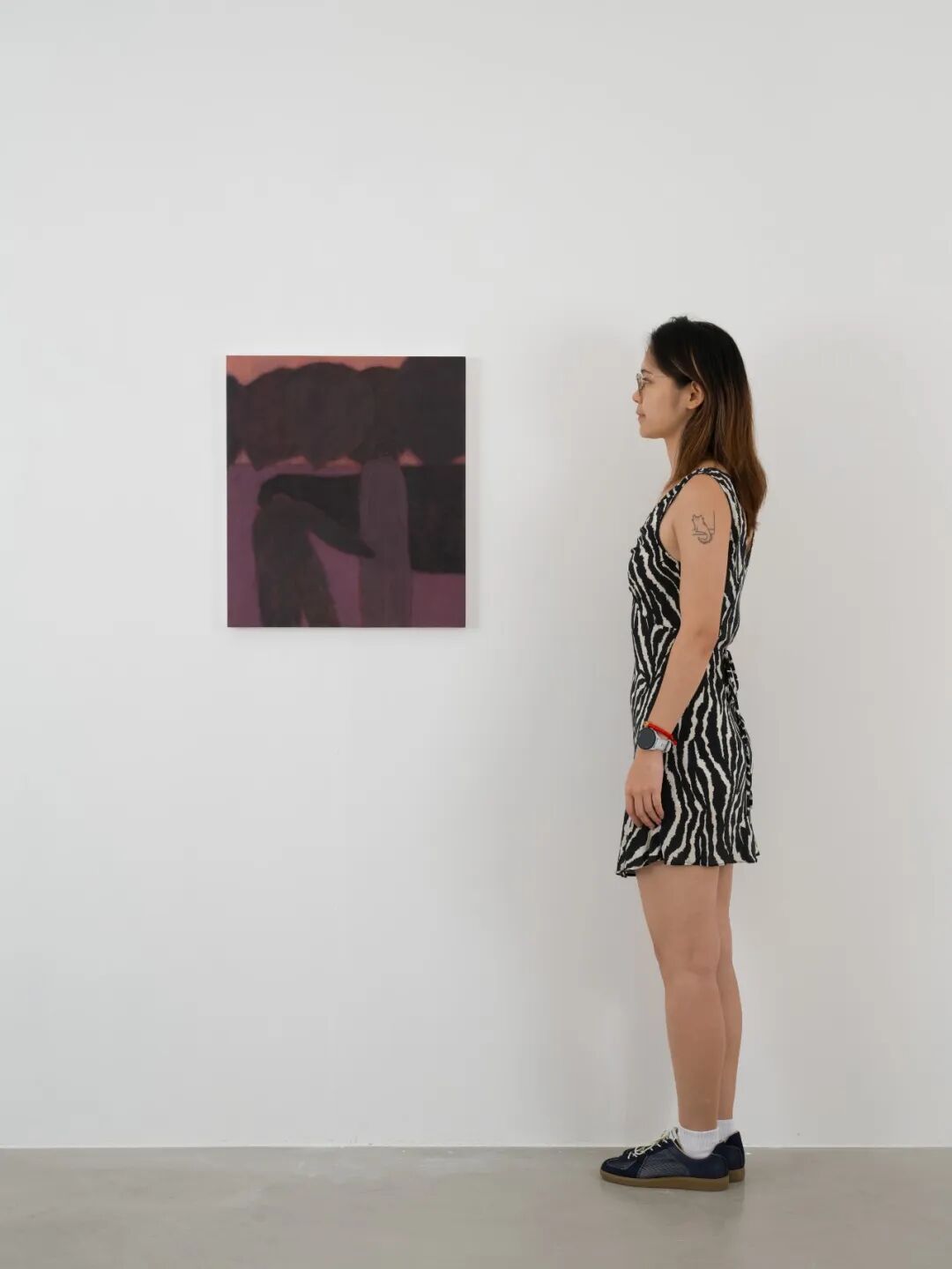 MP:在你的作品中,人物与其周围环境之间的关系往往是解开谜题的关键。例如,在《无题》(2024)中,中心人物的头发与周围的树状物体融为一体。你是如何在作品中探索这一主题的?