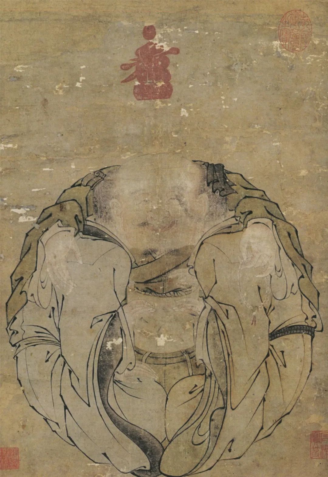 除此之外,明代宫廷绘画的风尚直接影响了桃花坞年画的题材和风格,这点可以从作品《一团和气》明显看到。《一团和气》本是宪宗朱见深的经典作品,不难看出其吉祥的寓意和南宋的用笔风格,是明代皇家宫廷的代表作品。桃花坞年画的《一团和气》可以说就是一份艺术衍生品,且不管当时带有何种政治目的,在形式构图和技法上基本照搬了原作,只是在色彩上更归纳和民间化,成为桃花坞最受欢迎的产品。