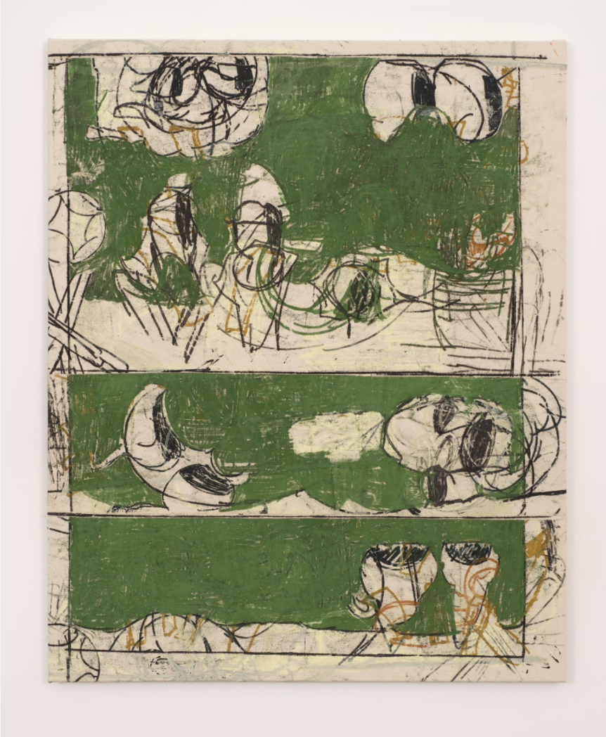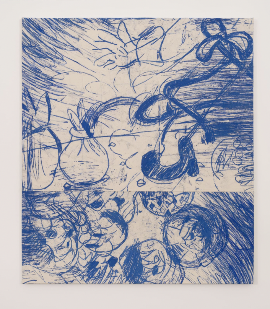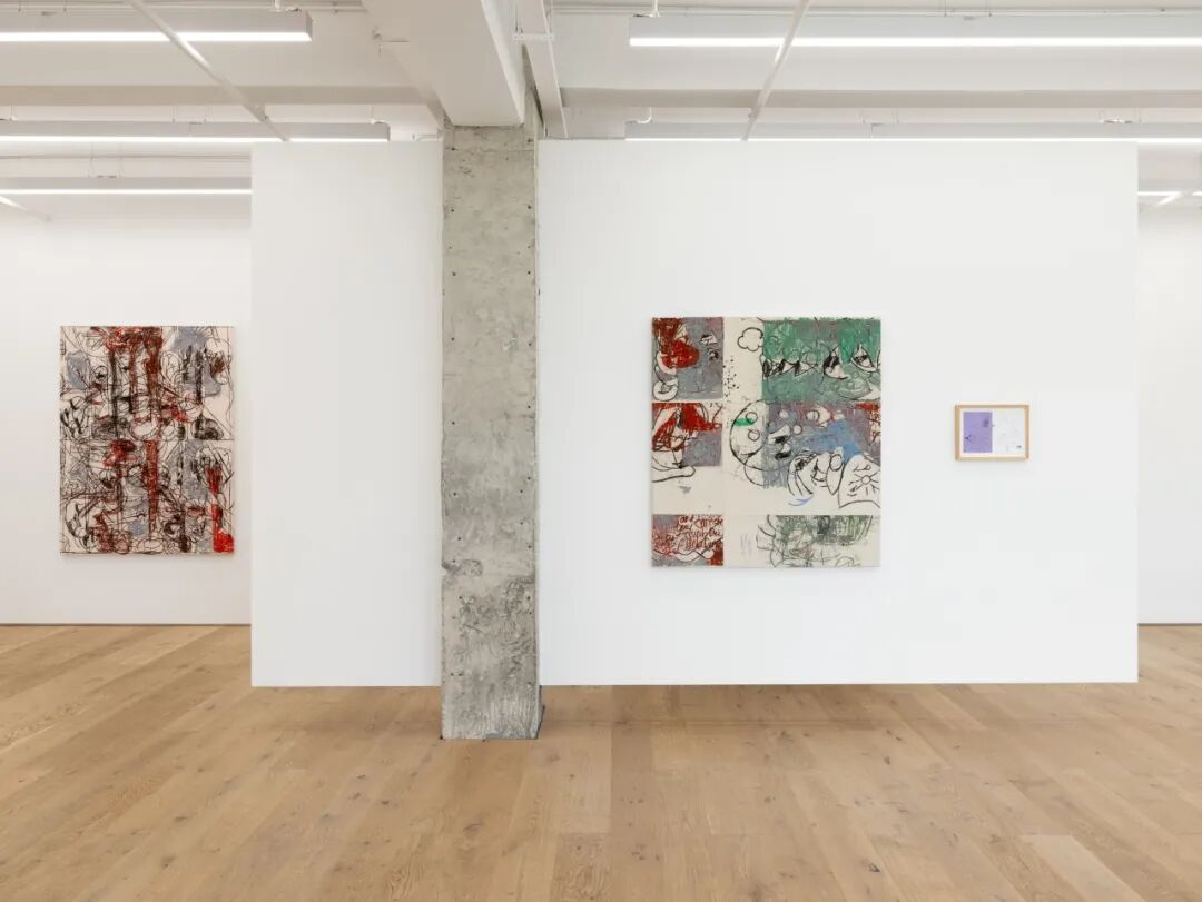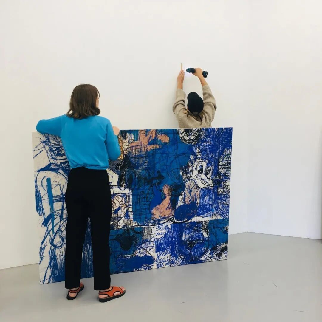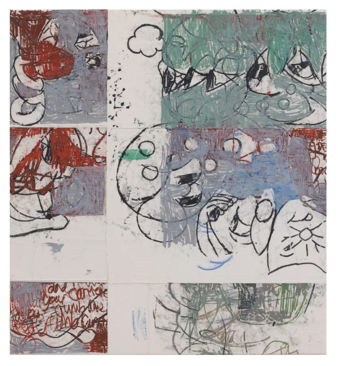 M:对于我们来说,刻意地去选择颜色几乎是不可能的。最好的创作往往是将独立的作品拼合在一起时诞生,而颜色意外的契合。颜色通常是我们从未想过要放置在一起的,我对此也很难解释,只能说是出于直觉的驱使。而关于线条,我们拥有绘画、出版独立杂志和漫画的经历,并热爱印刷物,现在只是转移到布面去使用颜料创作而已。因此,线条在我们的创作中非常重要。从某种意义上来说,我们将作品视作大型涂画,这是我们所喜爱的方式。
